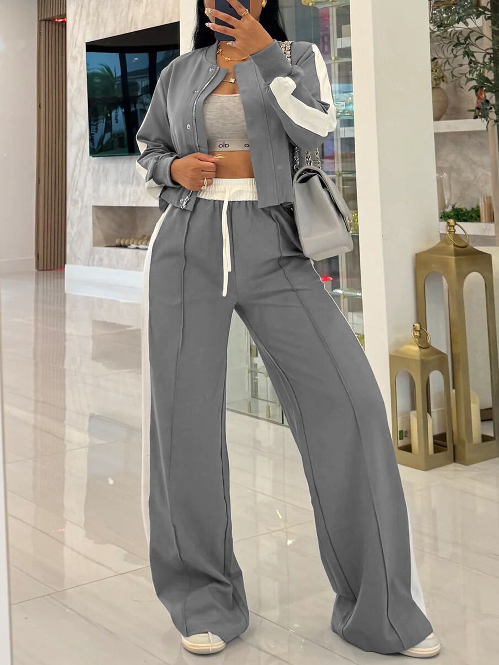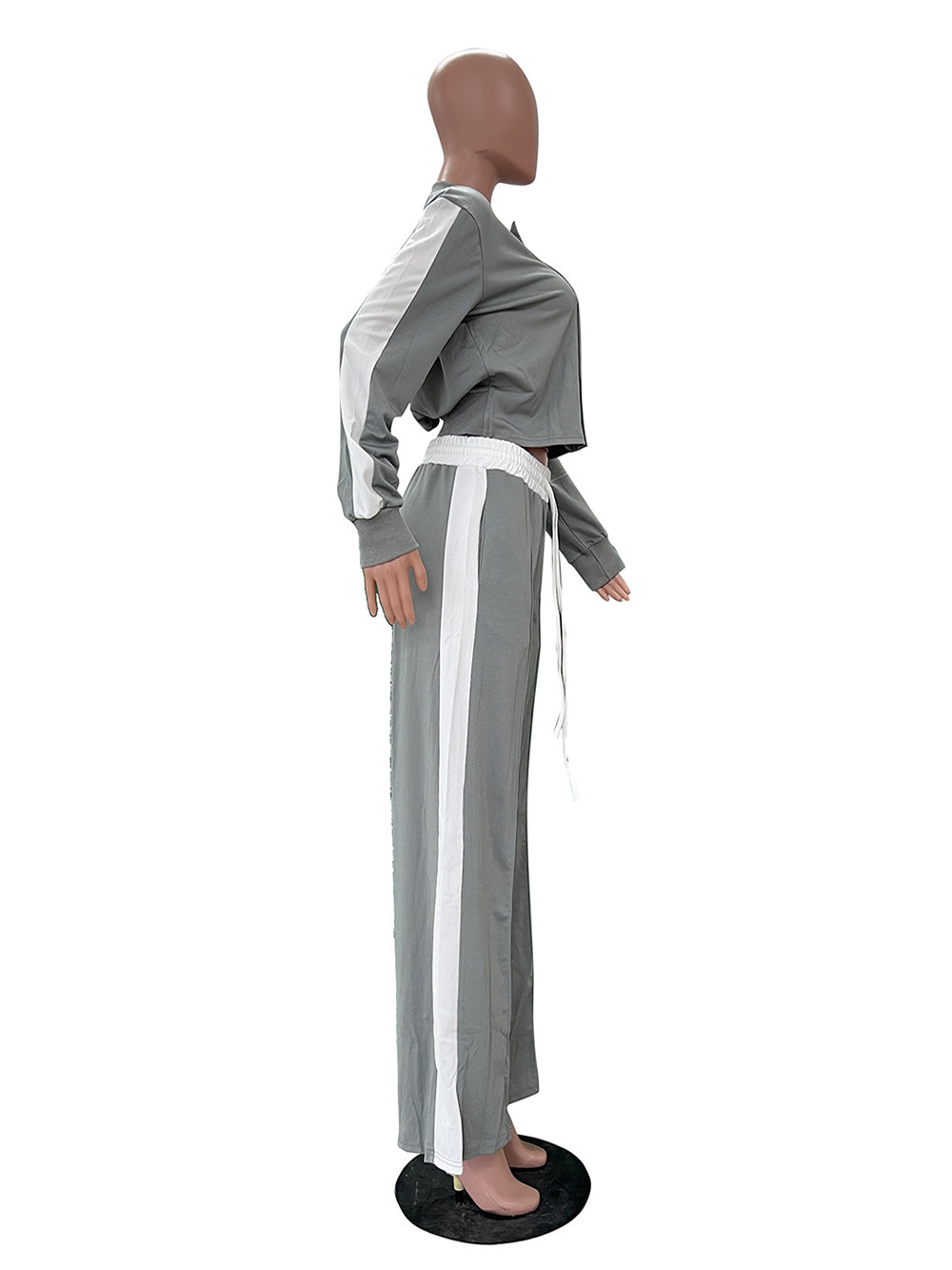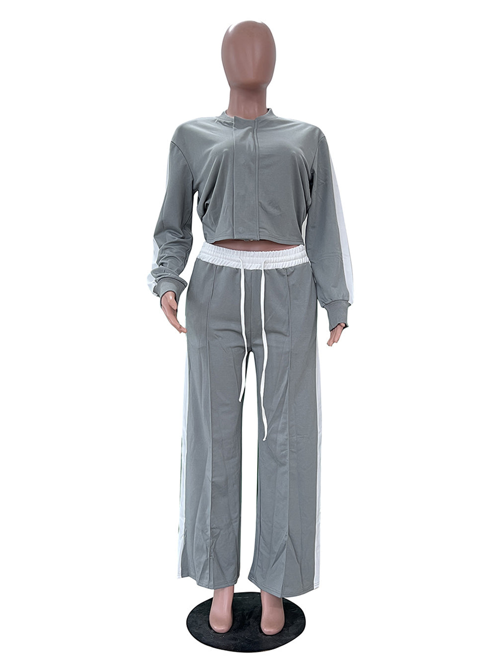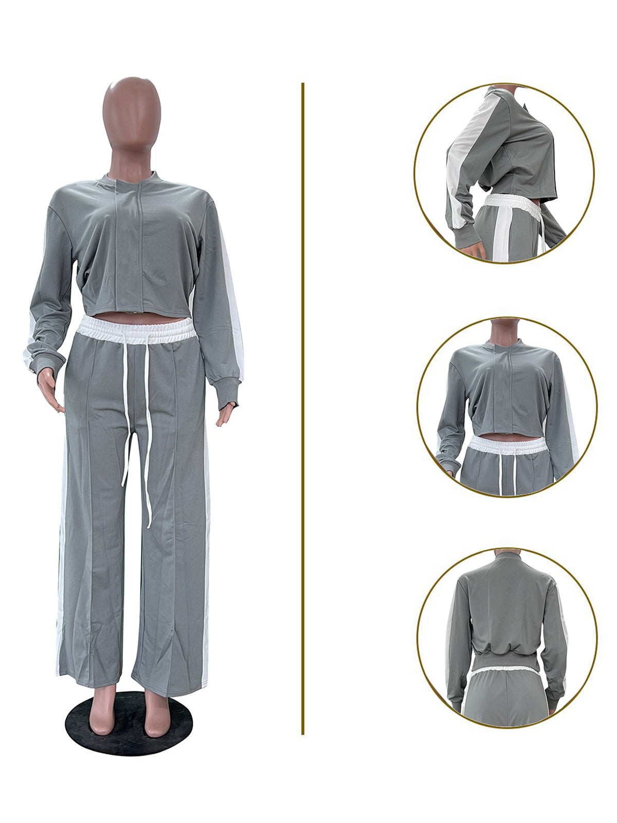 This Casual Zip Up Crop Top and Wide Leg Pants Sports Set offers a comfortable and stylish option for activewear. The zip-up crop top provides easy wear and a secure fit, while the wide leg pants ensure freedom of movement. Ideal for casual outings or workouts, this set combines functionality with a modern look, making it a versatile choice for your inventory.