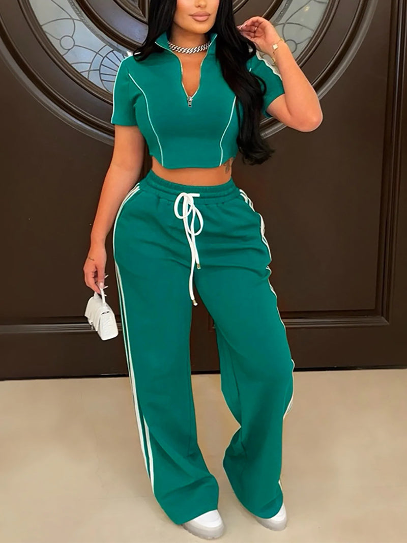 Experience the high demand and optimal profits of our Casual Zipper Crop Top Drawstring Pant Sports Sets for wholesale purchases. Stay trendy and comfortable with our stylish set.