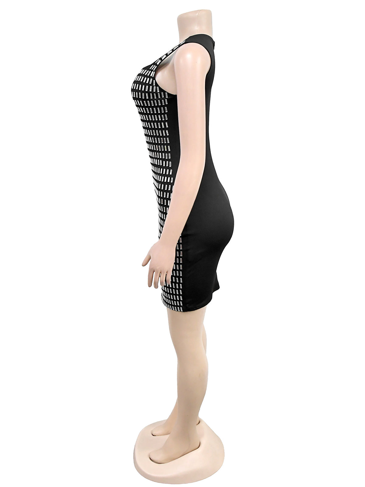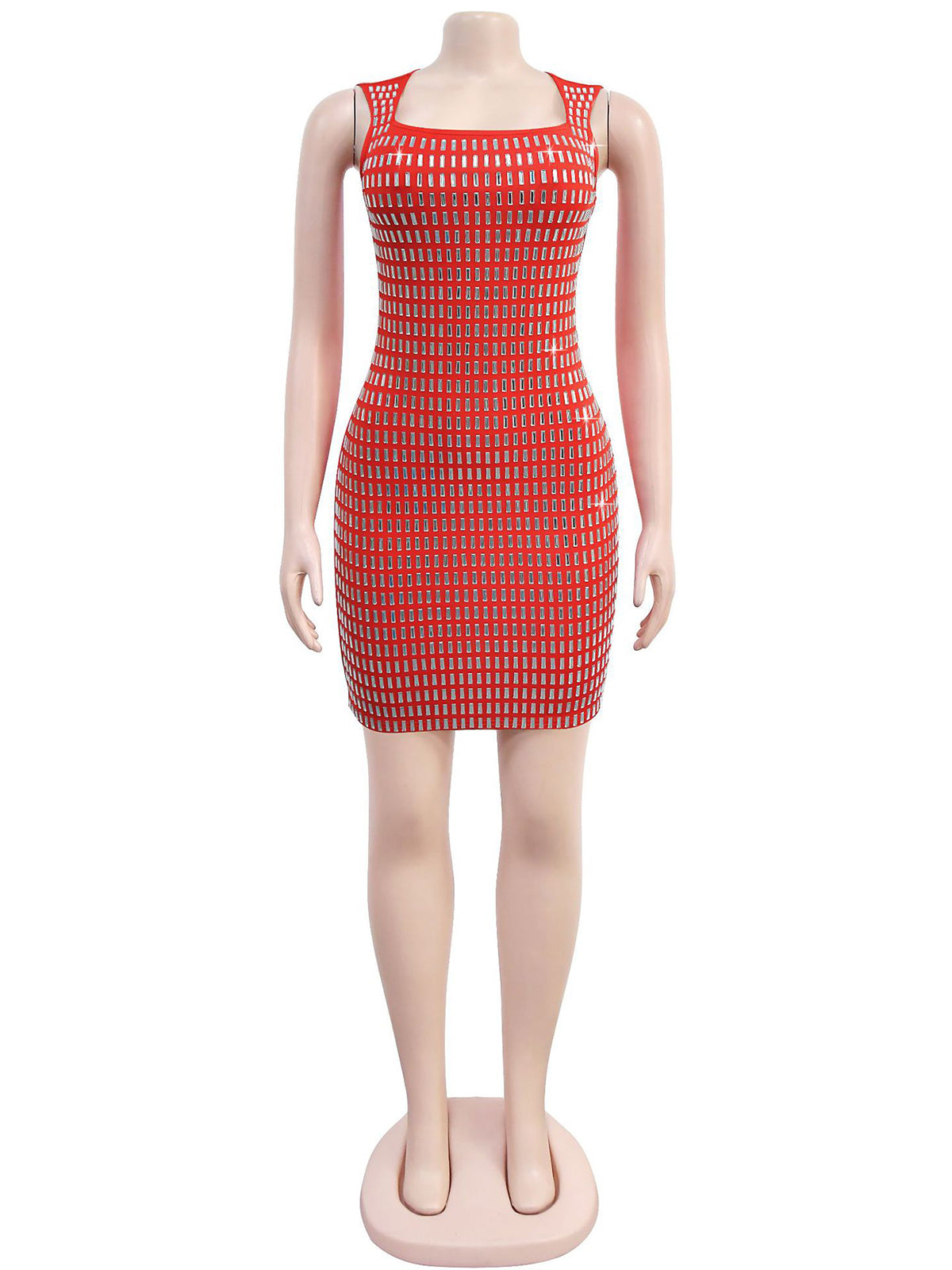 Elegant Rhinestones Sleeveless Bodycon Mini Dress This stunning sleeveless bodycon mini dress features eye-catching rhinestone embellishments that deliver maximum sparkle and sophistication. The form-fitting silhouette hugs curves beautifully while the shimmering details elevate any occasion from evening events to upscale gatherings. Perfect for wholesale buyers seeking statement pieces that command attention. The versatile design works as a standalone dress or layered with jackets and accessories. High-quality construction ensures durability through repeated wear and cleaning. Ideal for retailers targeting fashion-forward customers who appreciate glamorous, trend-setting styles.