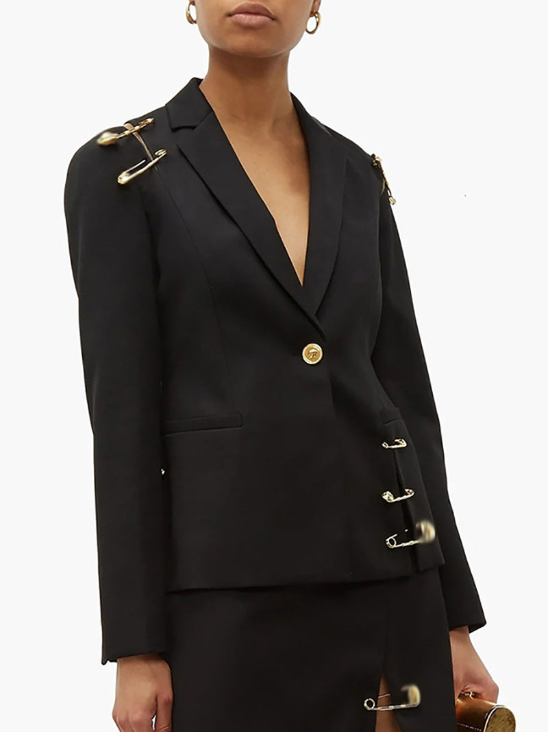 Elegant Safety-pin Single-breasted Slim Blazer