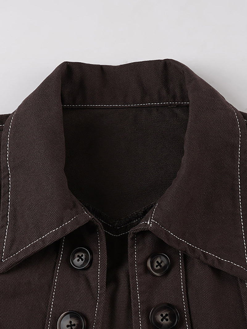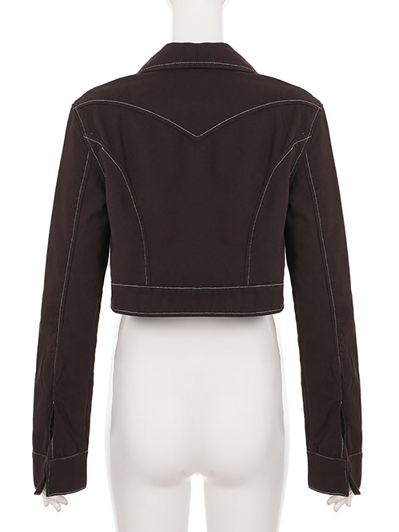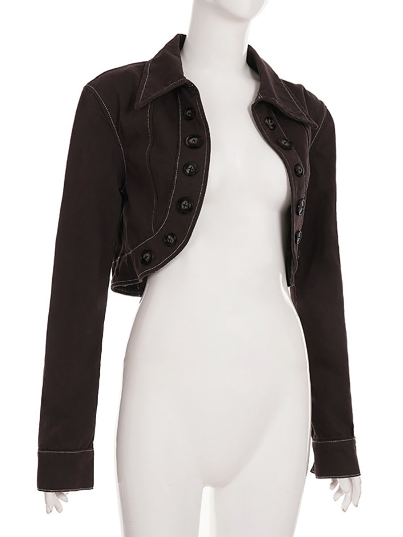 Fashion Button Cropped Denim Jacket