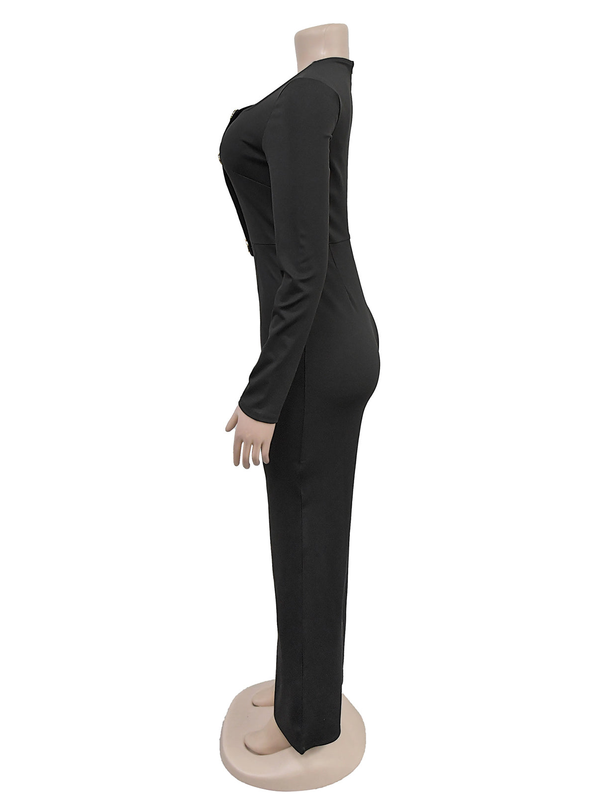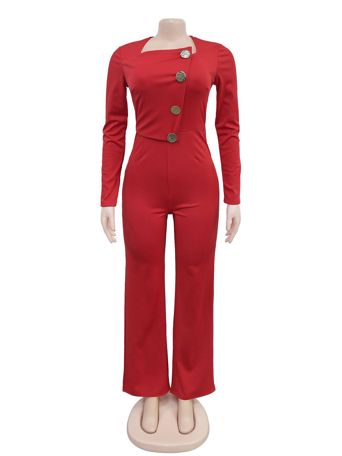 # Fashion Casual Long Sleeve Button Slim Fit Jumpsuit Elevate your wholesale inventory with this versatile one-piece essential. Featuring a tailored slim fit silhouette, full-length sleeves, and functional button front closure, this jumpsuit delivers contemporary style with practical appeal. The streamlined design flatters multiple body types, making it ideal for retail customers seeking effortless sophistication. Perfect for casual wear, weekend outings, or layered styling options. Quality construction ensures durability through repeated wear and washing. Stock this wardrobe staple to meet consistent customer demand for comfortable yet polished one-piece solutions.