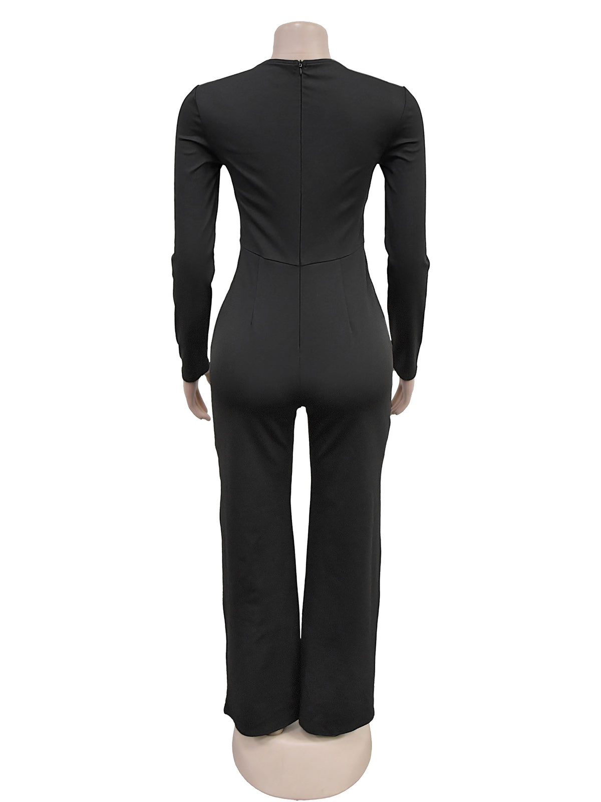 Fashion Casual Long Sleeve Button Slim Fit Jumpsuit