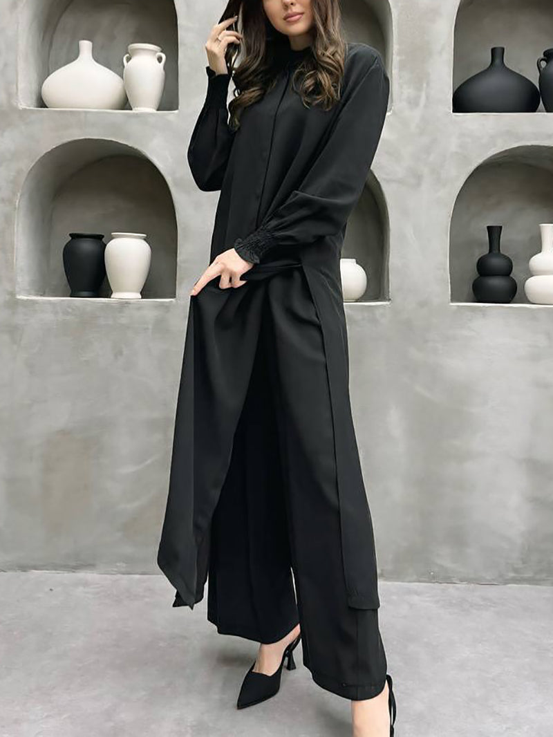 Fashion Long Shirt Straight Pants Set This versatile two-piece collection combines a classic long shirt with tailored straight pants, perfect for wholesale buyers seeking quality basics. The set offers excellent value for retailers looking to stock essential wardrobe staples that appeal to diverse customer demographics. Clean lines and neutral styling make these pieces easy to mix and match, maximizing inventory versatility. Ideal for bulk orders, this set provides reliable profit margins while meeting consistent customer demand for comfortable, everyday wear.