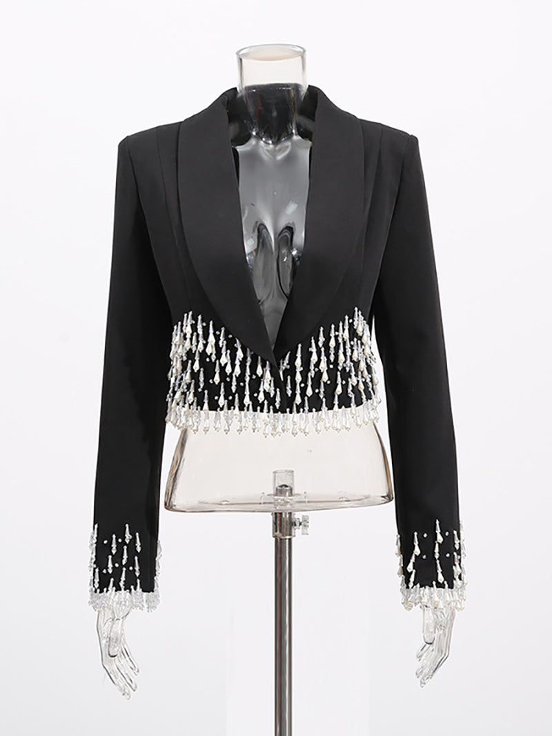 This Fashion Rhinestone Fringe Design Cropped Blazer boasts a highly cost-effective design, making it a smart choice for wholesale buyers. The rhinestone fringe adds a touch of luxury while the cropped style offers a modern and stylish look. Elevate your wardrobe with this versatile and affordable blazer.