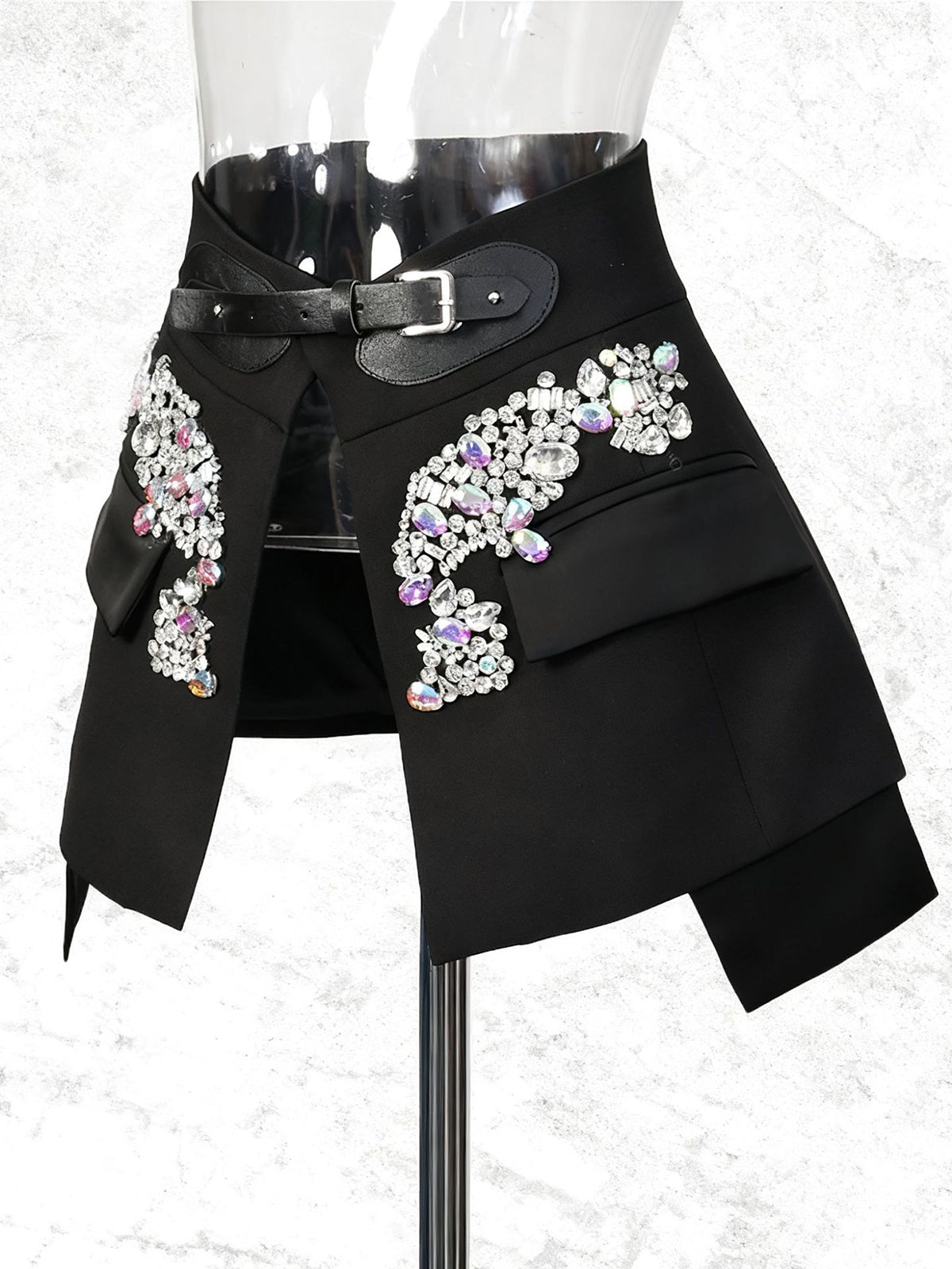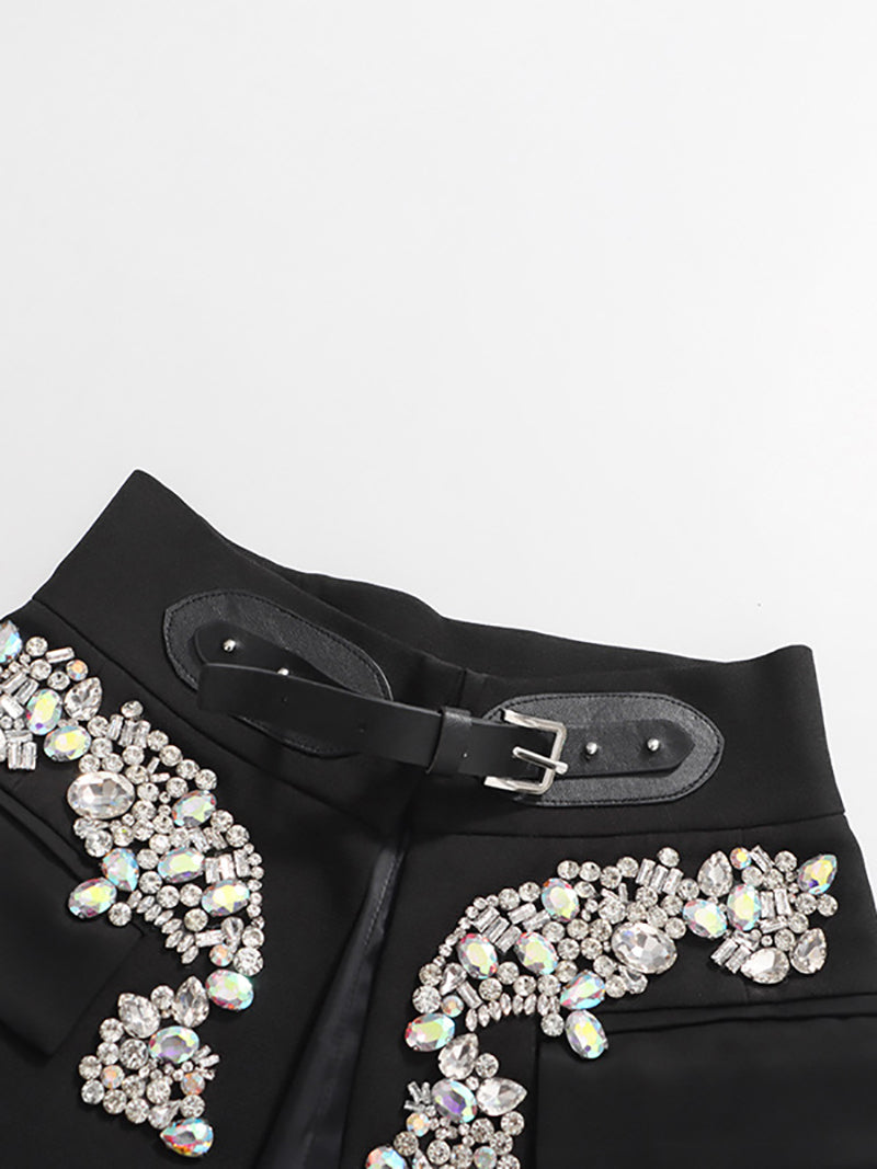 Fashion Split Rhinestone Belted High Waist Mini Skirt Elevate your inventory with this eye-catching mini skirt featuring a flattering high-waist cut and bold rhinestone belt detail. The strategic front split adds contemporary flair while maintaining versatility for various styling options. Crafted for the fashion-forward customer, this piece combines trendy design elements with quality construction. Perfect for retailers seeking statement pieces that appeal to style-conscious buyers looking for standout pieces that photograph well and drive repeat purchases. Stock this bestseller-potential item to meet demand for bold, embellished basics that work across multiple seasons and occasions.