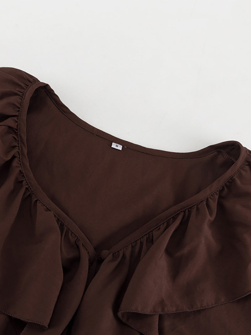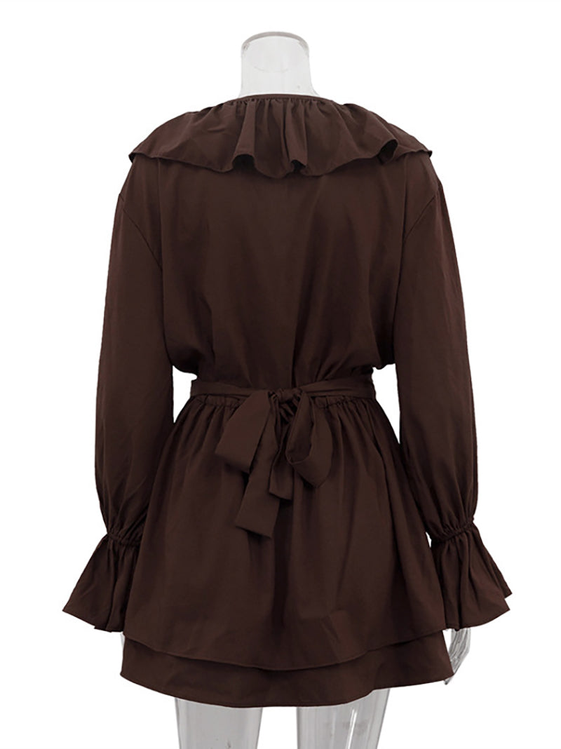 # Fashion V Neck Ruffles Cinched Waist Mini Dress Elevate your inventory with this versatile mini dress featuring a flattering V-neckline and feminine ruffled detailing. The cinched waist creates a defined silhouette that appeals to diverse body types, while the mini length offers contemporary styling options. Crafted for comfort and movement, this piece works seamlessly for casual outings, evening events, or layered looks. The ruffled accents add visual interest without compromising wearability, making it a reliable choice for wholesale buyers seeking pieces with strong retail appeal. Perfect for boutiques targeting fashion-forward customers seeking affordable, on-trend basics with standout details.