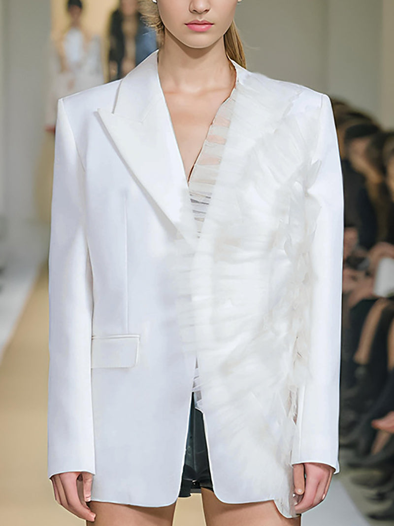 Long Sleeve Mesh Ruffle Loose Casual Blazer