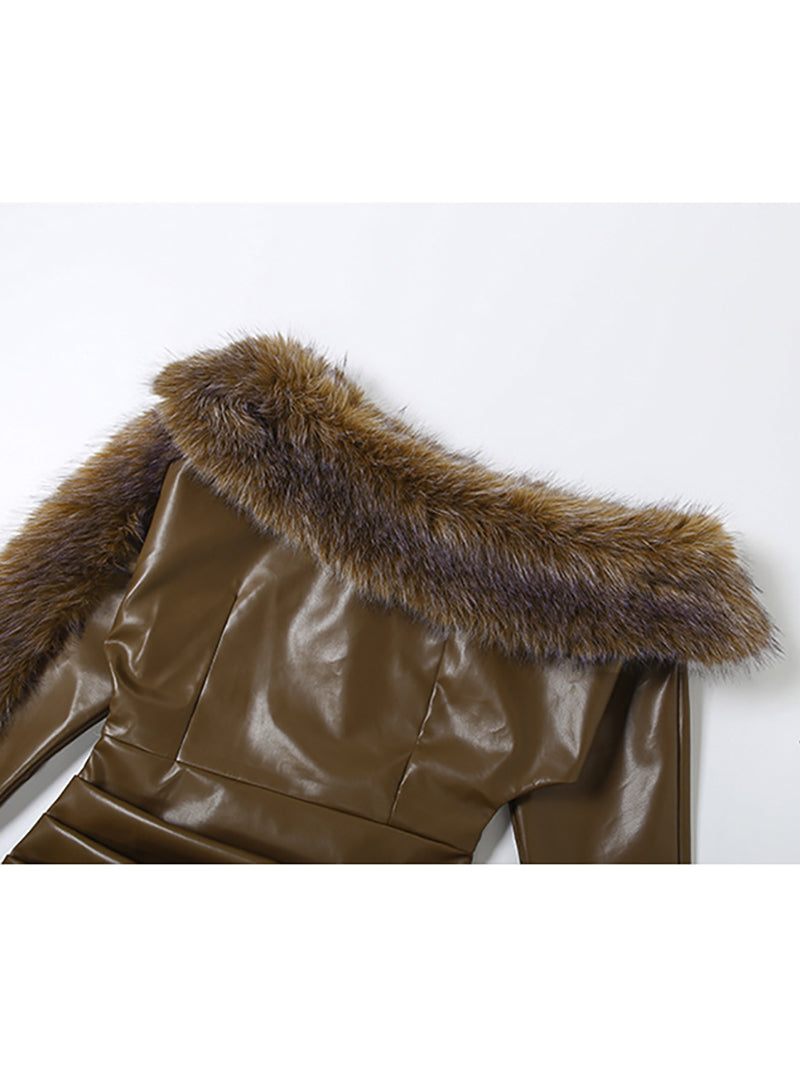 Sexy Faux-Fur Combo Faux-Leather Dress