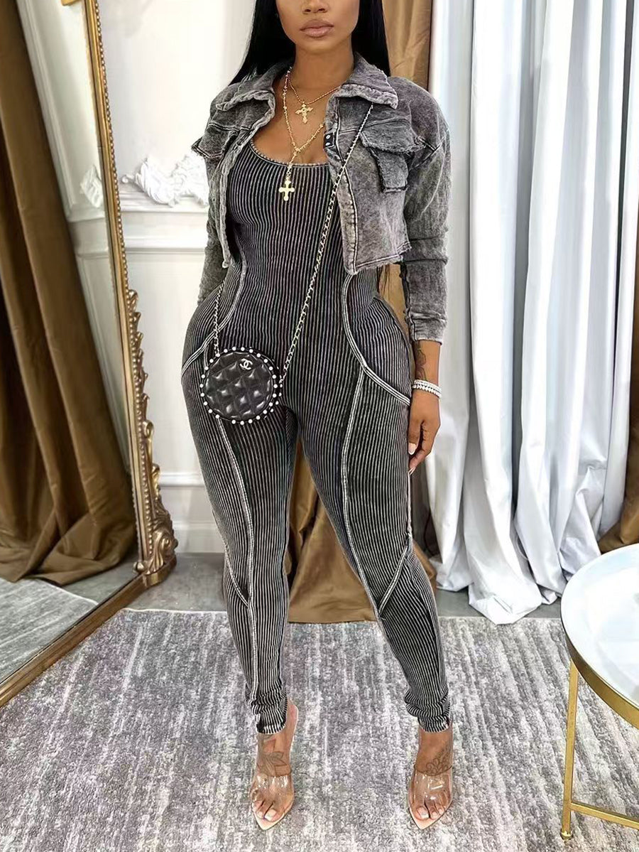 Sexy Jumpsuit Tracksuit And Long Sleeve Jacket Set