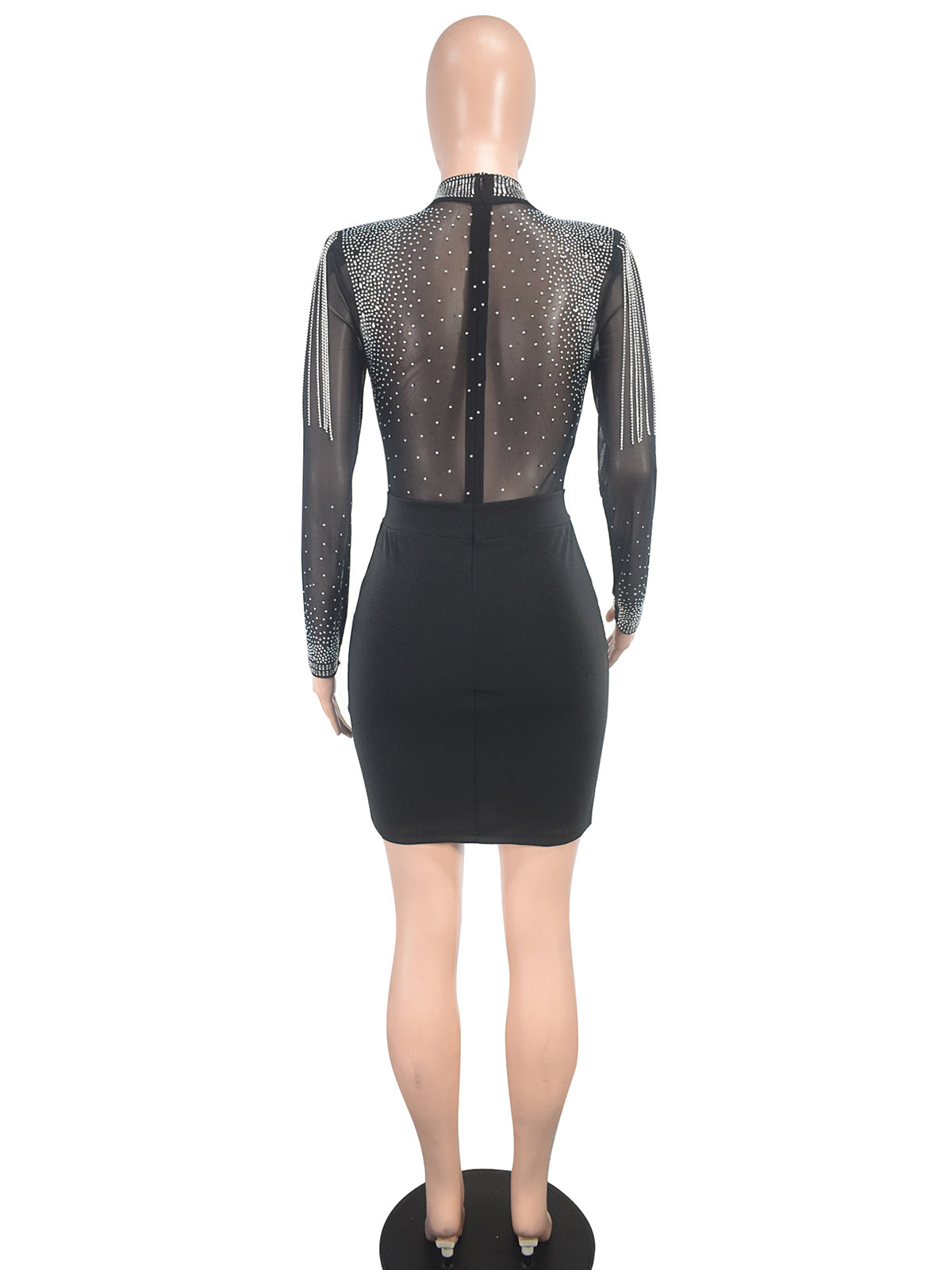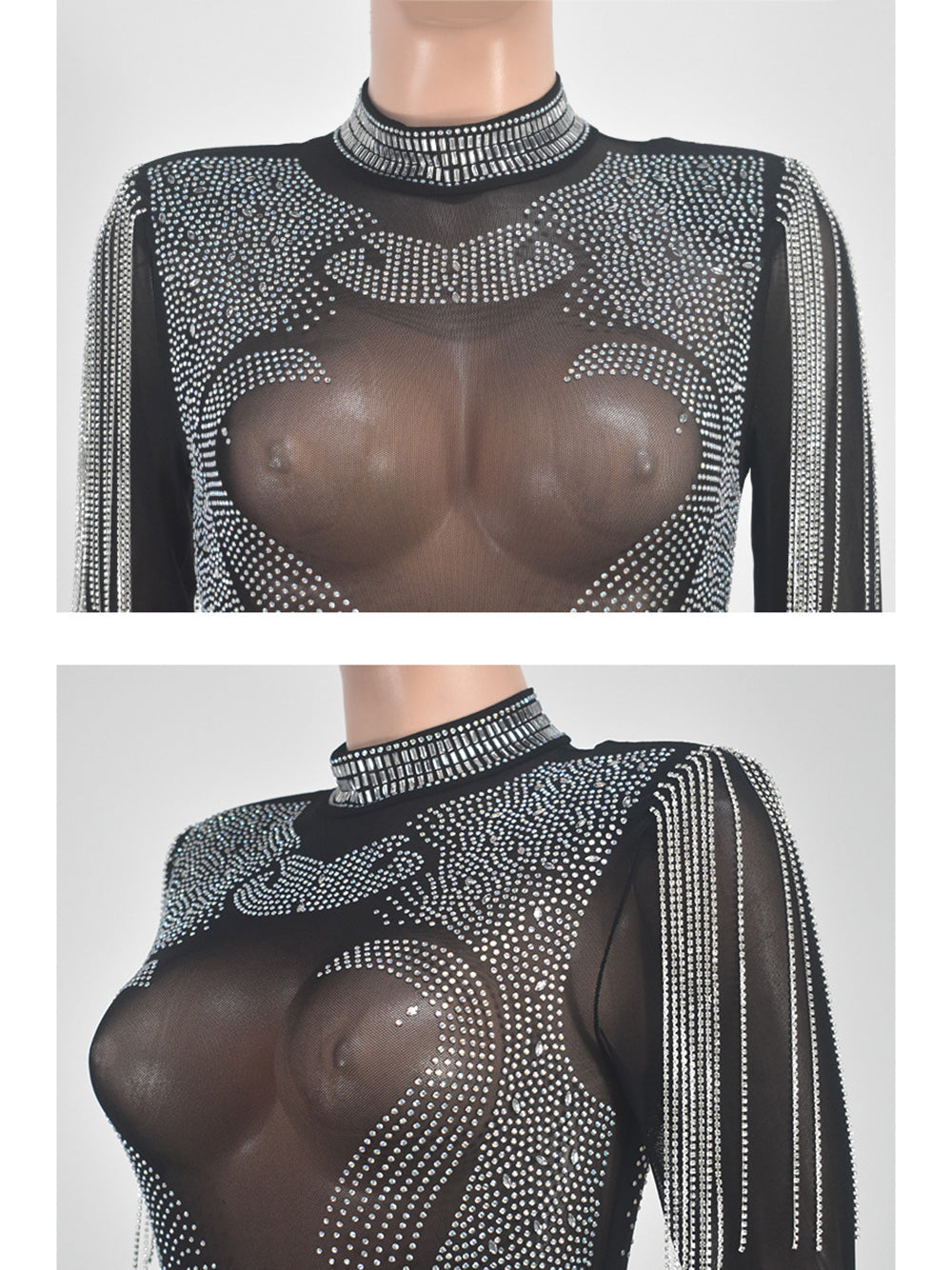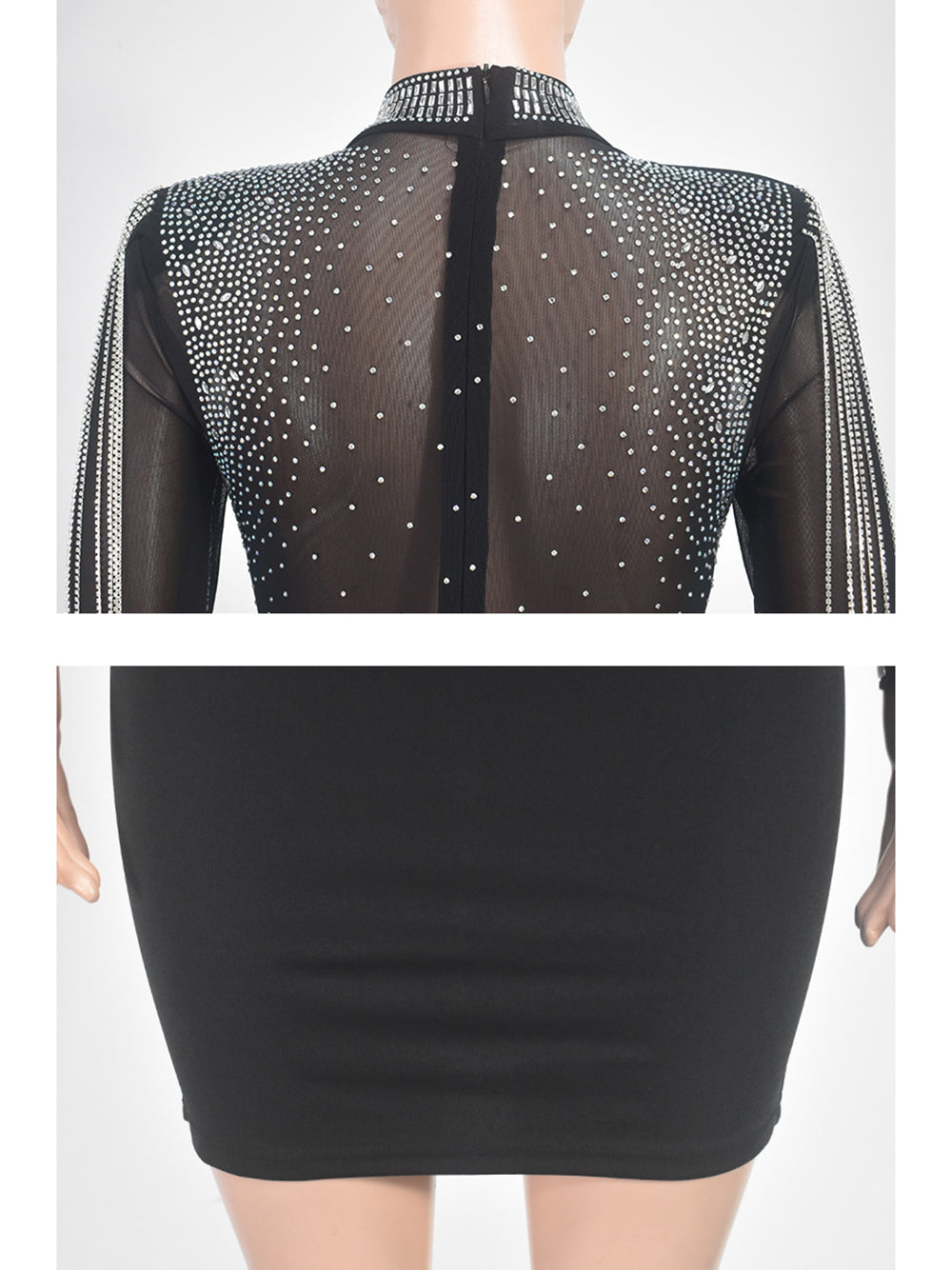# Sexy Rhinestone Embellished Mesh Nightclub Mini Dress Make a bold statement with this eye-catching mini dress, featuring premium rhinestone embellishments and sheer mesh paneling for maximum impact on the dance floor. The form-fitting silhouette and strategic cutouts create an alluring look perfect for nightclub venues and special events. High-quality construction ensures durability through repeated wear, while the sparkling rhinestone details catch light beautifully under club lighting. Ideal for wholesale buyers seeking trendy, fashion-forward pieces that appeal to style-conscious customers. Available in versatile sizing to meet diverse customer demands.