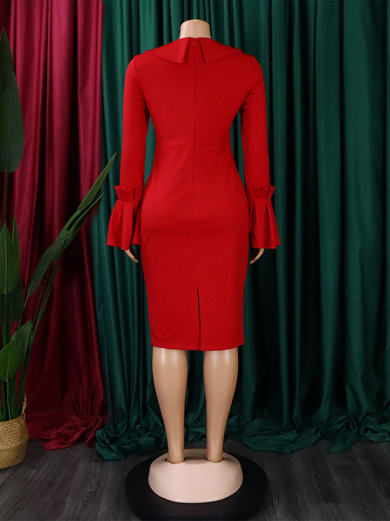 Sexy V-Neck Bell Sleeves Bodycon Pencil Dress