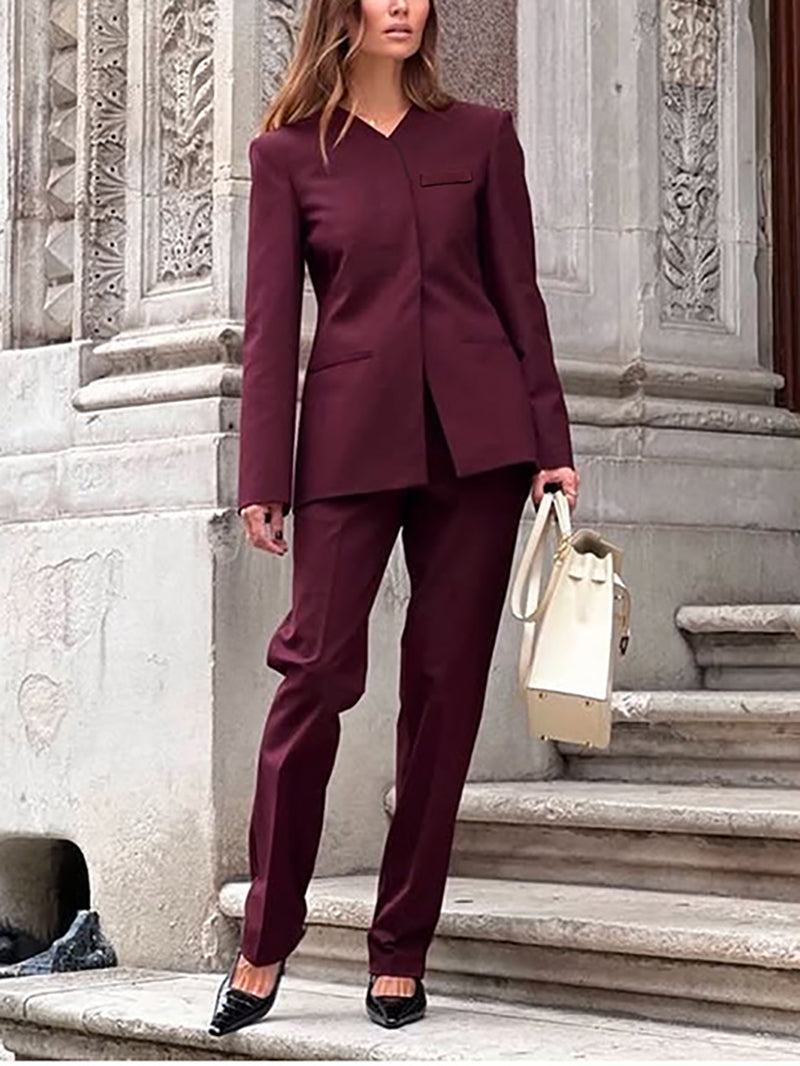 Simple Fashion Slim Blazer Suit Pants Two Piece Set