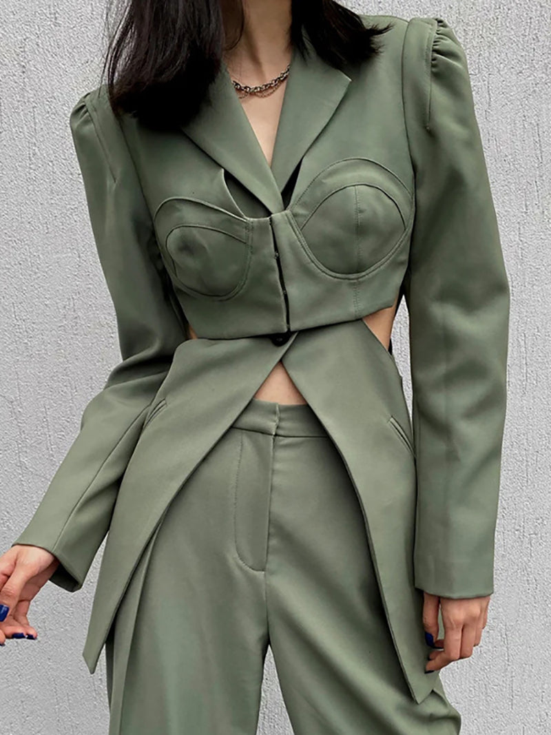 This Solid Hollow Out Patchwork Button Tunic Blazer is the perfect combination of style and affordability. Its unique design and high-quality materials make it a standout piece in any wardrobe. With its timeless appeal and great value, it's the perfect choice for any wholesaler.
