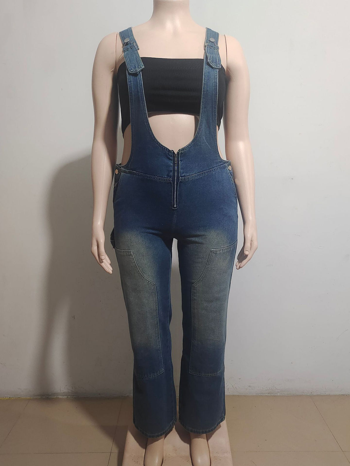 Introducing our Vintage Backless Denim Wide Leg Jumpsuit, perfect for wholesale retailers. With a unique backless design, this jumpsuit is a stylish and versatile piece. The wide leg cut adds a touch of sophistication, making it perfect for any occasion. Upgrade your inventory with this must-have item.