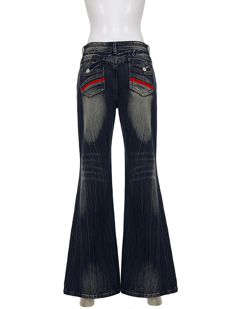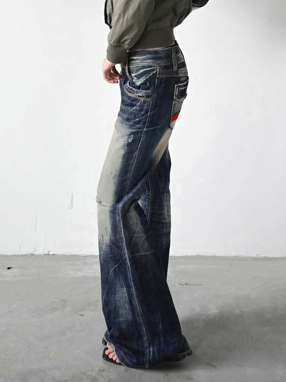 # Vintage Ripped Loose Casual Flared Jeans Timeless flared silhouette with strategic rips and distressing for authentic...