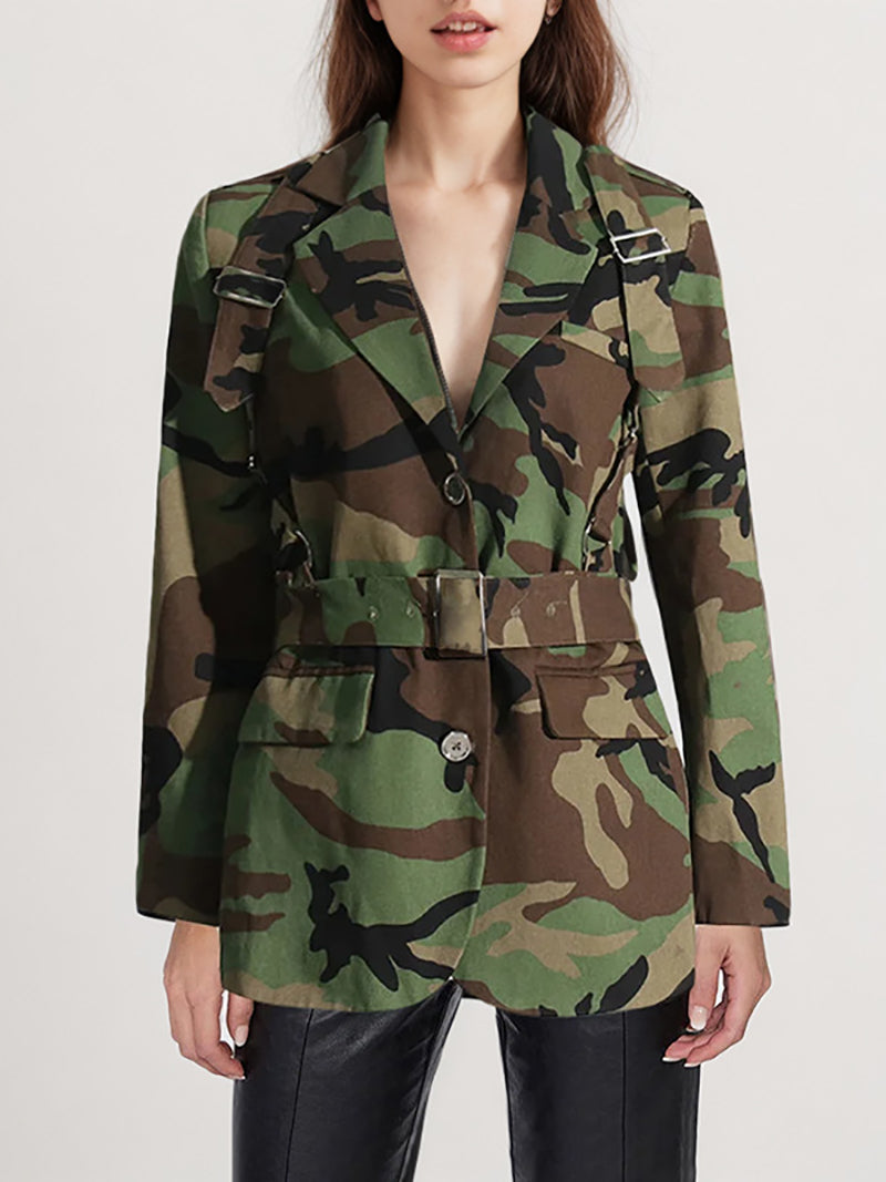 Camo Single Breasted Long Sleeve Casual Blazer is designed for versatile wear with a stylish camo pattern...