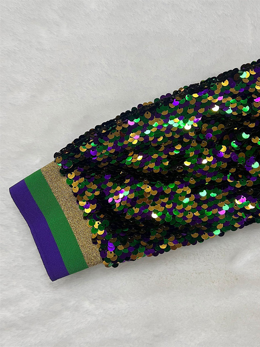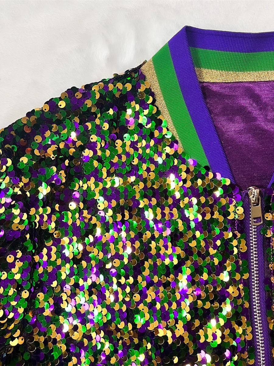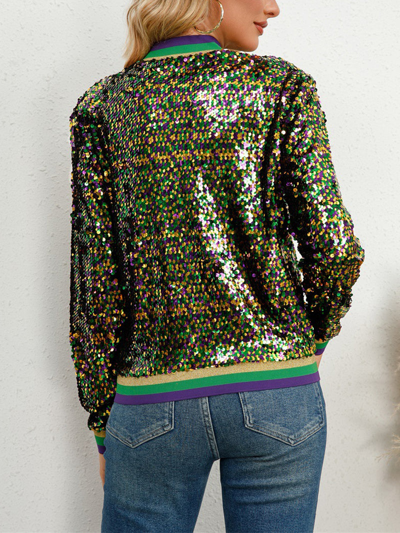 # Casual Cropped Sequin Baseball Jacket Make a bold statement with this eye-catching sequin baseball jacket. The cropped silhouette offers a modern, flattering fit perfect for casual wear or layering. Shimmering sequin detailing catches the light with every movement, adding instant glamour to any outfit. Ideal for wholesale buyers seeking trendy pieces that appeal to fashion-forward customers. Versatile enough for everyday styling or special occasions, this jacket combines comfort with contemporary flair. Stock up on this bestseller and watch it fly off your shelves.