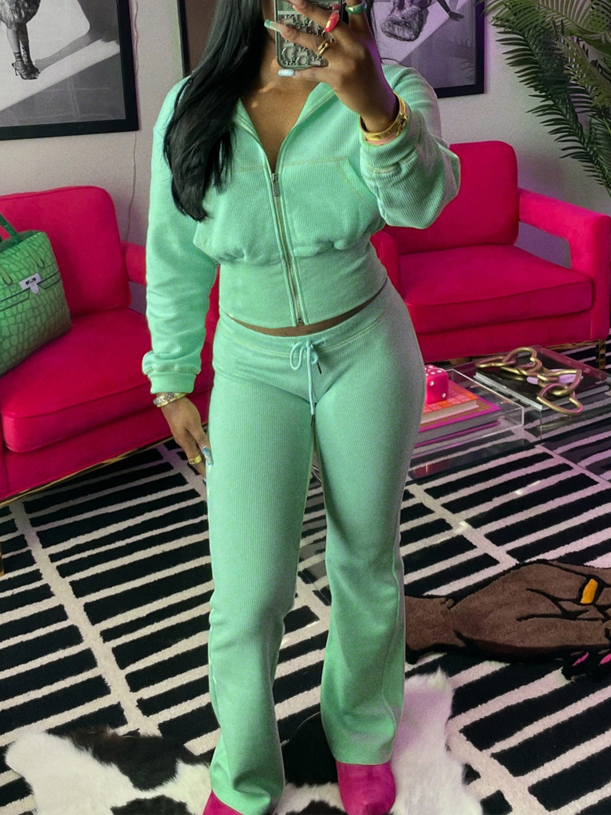 Casual Hooded Collar Drawstring Two Piece Pants Set