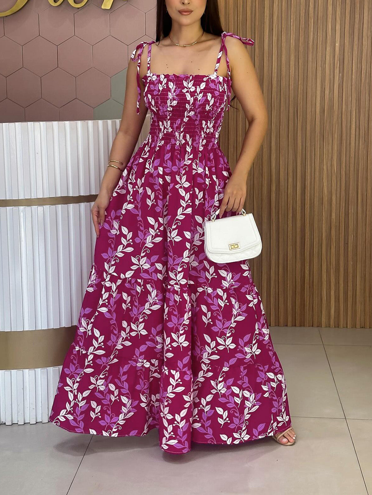 Introducing our high-quality and affordable Casual Print Backless Spaghetti Strap Maxi Dress. This dress offers a perfect...