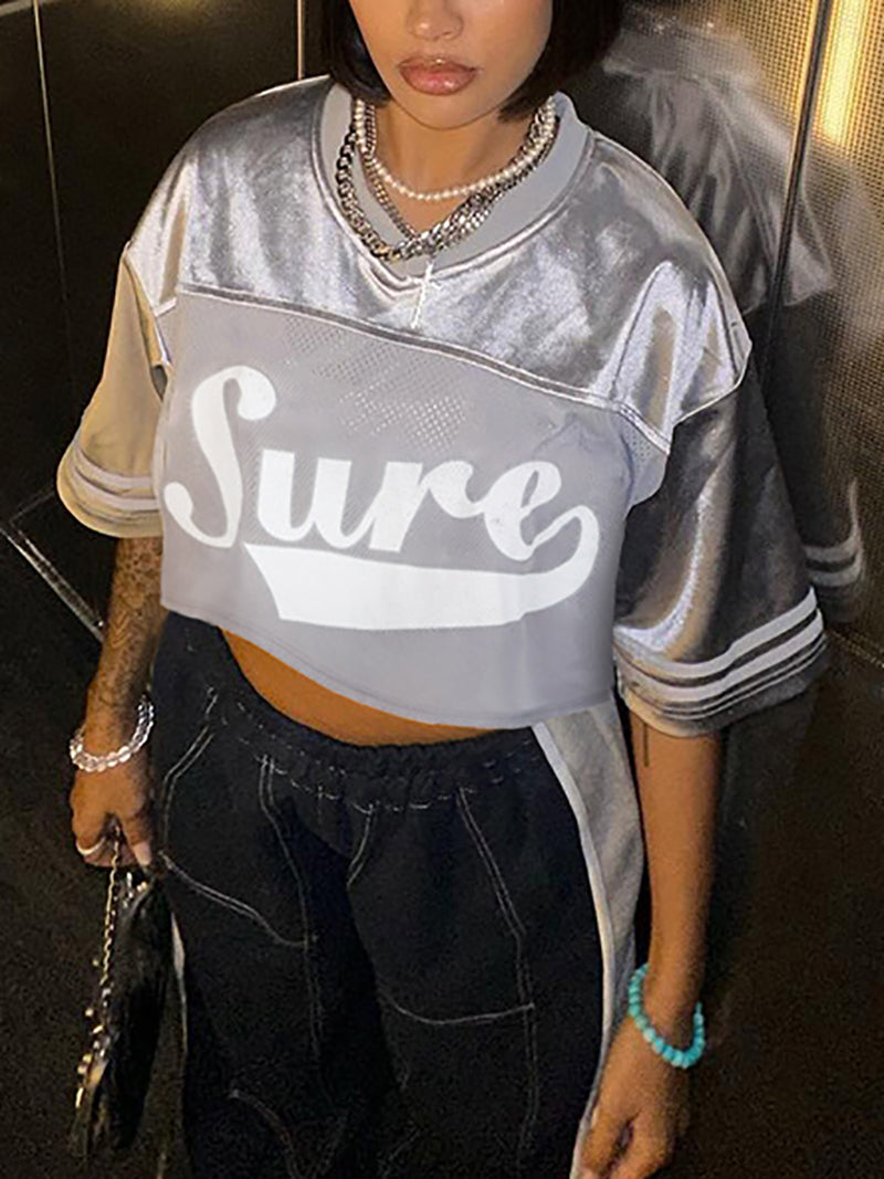 Wholesale prices make this Casual Print Mesh Cloth Patchwork Cropped T-shirt a great deal. The mesh fabric and patchwork design add a unique touch to this cropped t-shirt, perfect for any casual occasion.