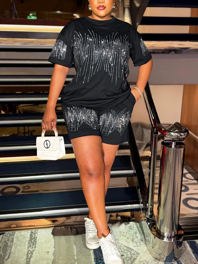 This Casual Round Collar Rhinestone T shirt Shorts Set offers impressive value for its price. Featuring a stylish round collar design and sparkling rhinestone accents, this set is perfect for casual wear. It is a great choice for those looking for both quality and affordability.