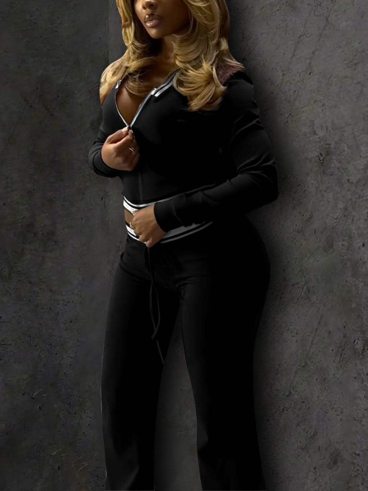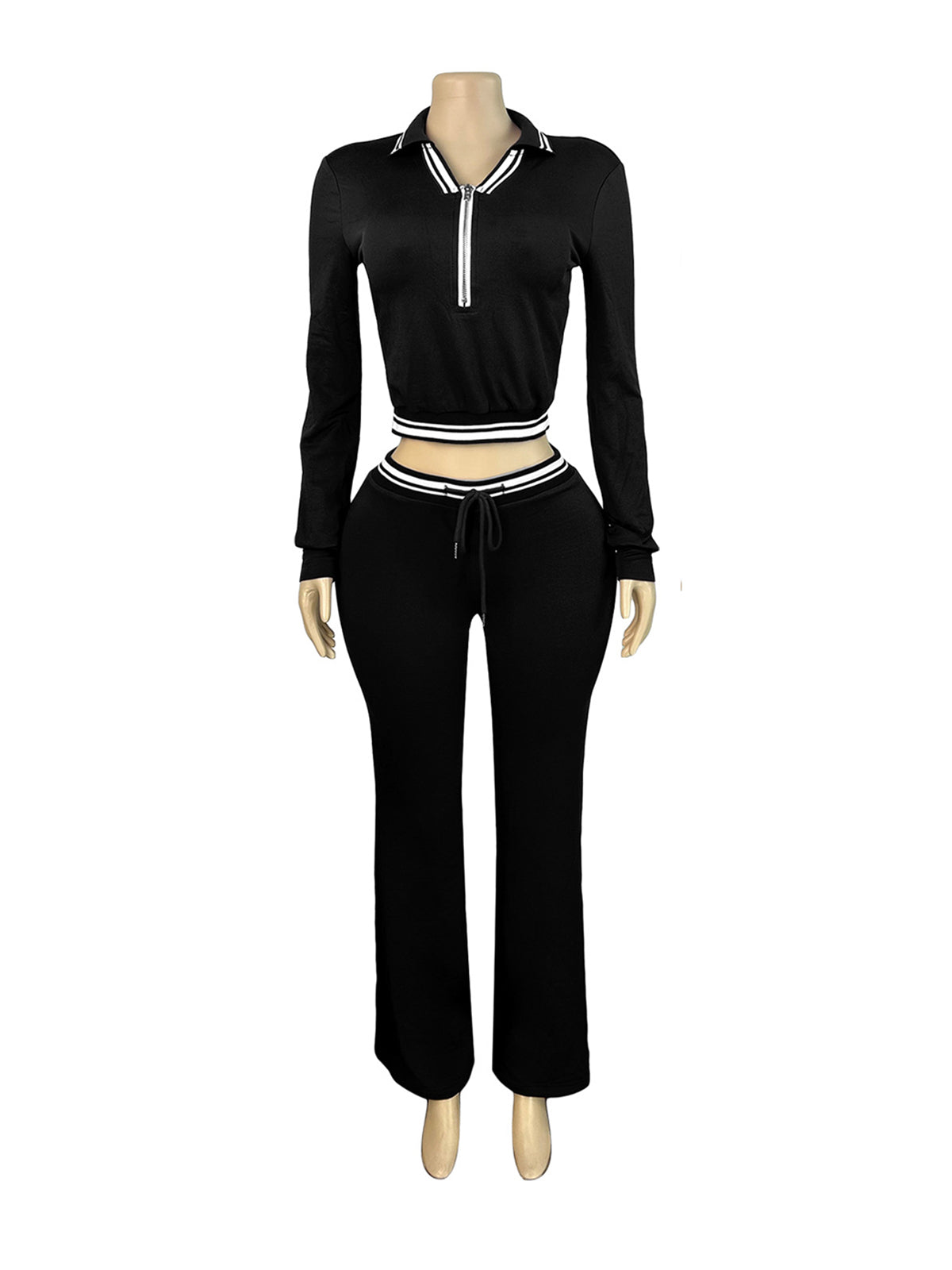 # Casual Stripe Zipper Top Drawstring Pants Sports Sets Perfect for wholesale buyers seeking versatile activewear. This two-piece sports set features a striped zipper top paired with comfortable drawstring pants, ideal for casual wear, gym sessions, or everyday comfort. The classic stripe design appeals to a broad customer base, while quality construction ensures durability through repeated wear and washing. Available in multiple sizes to meet diverse retail needs. Competitive pricing makes this set an excellent addition to your inventory for customers seeking affordable, stylish sportswear solutions.