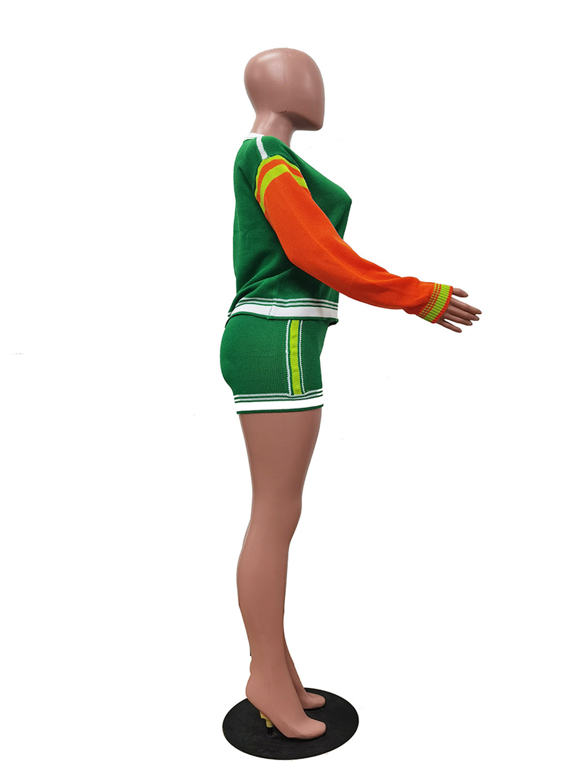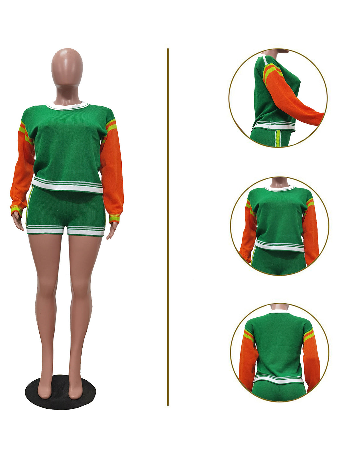 Color Patchwork Knit Sweatshirt Shorts Tracksuits