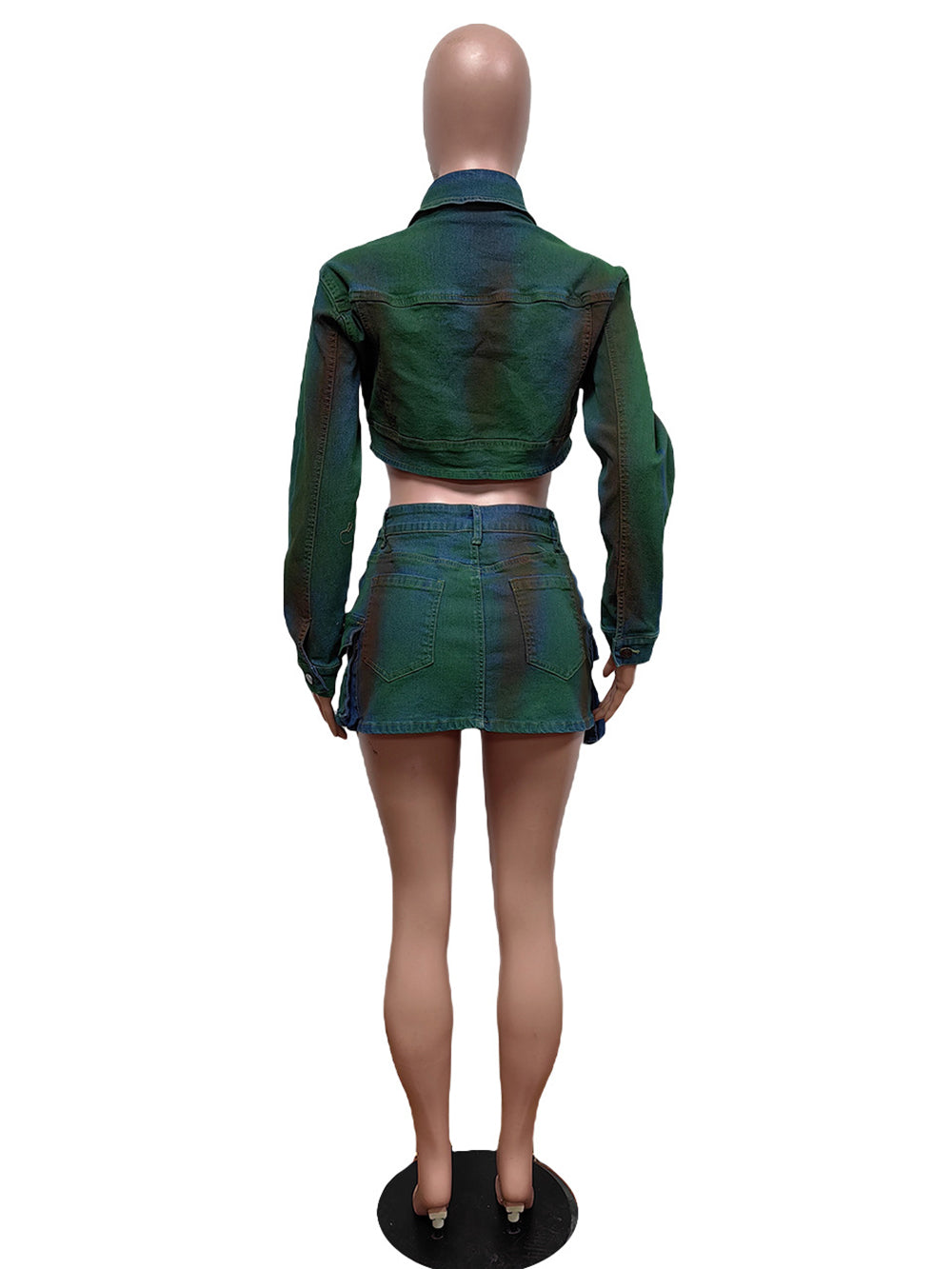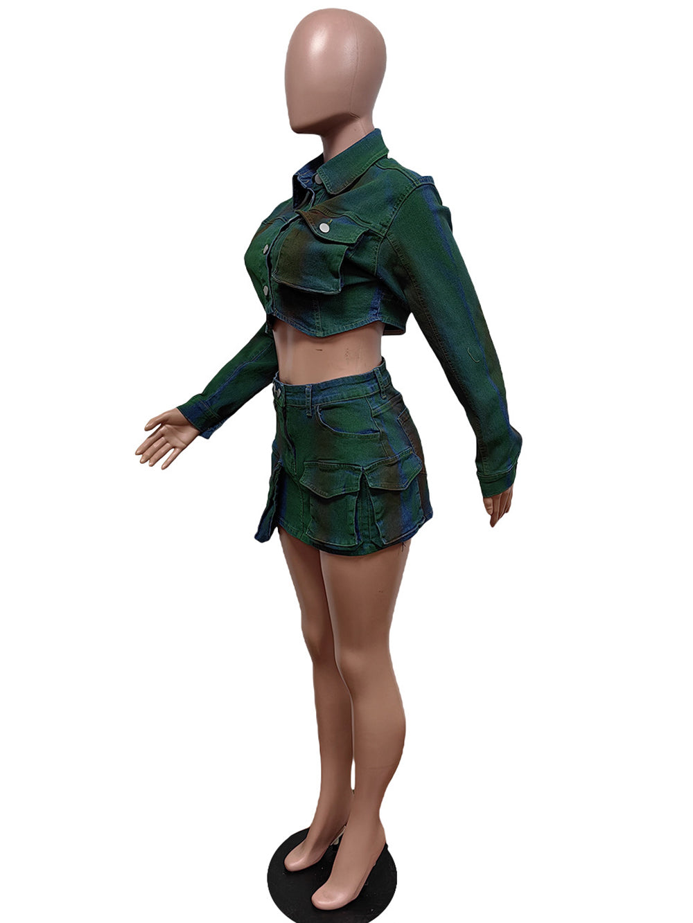 # Cropped Stretch Cargo Denim Skirt Set Elevate your inventory with this versatile two-piece denim collection. Featuring a cropped silhouette paired with a cargo-style skirt, this set combines contemporary design with functional details. The stretch denim fabric ensures comfort and durability for everyday wear, while the cargo pockets add practical appeal. Perfect for wholesale buyers seeking on-trend pieces that resonate with style-conscious customers. This set offers excellent value for retailers looking to stock pieces that balance fashion-forward aesthetics with wearability.