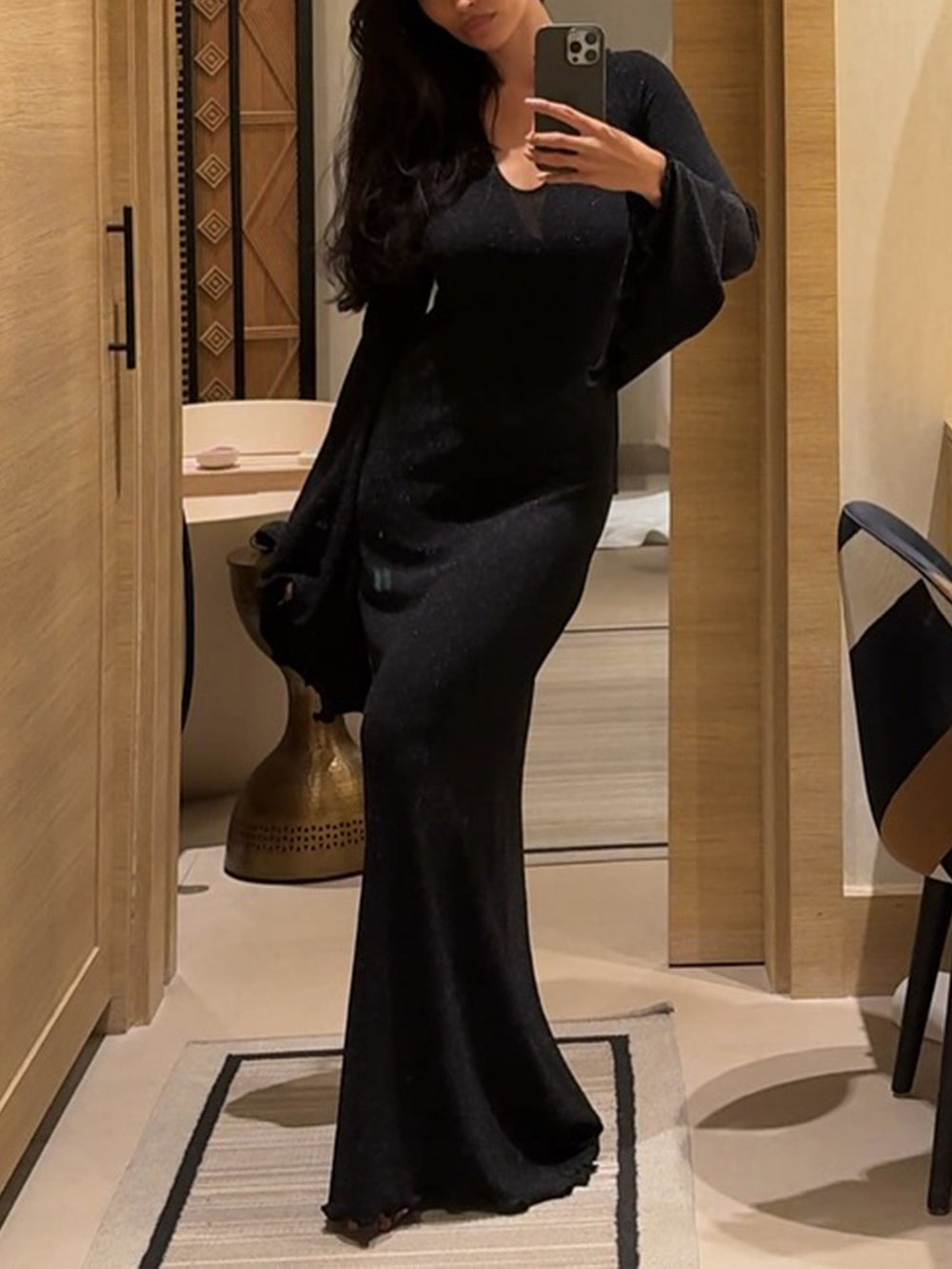 Elegant Flared Sleeve Backless Lace-Up Slim Maxi Dress