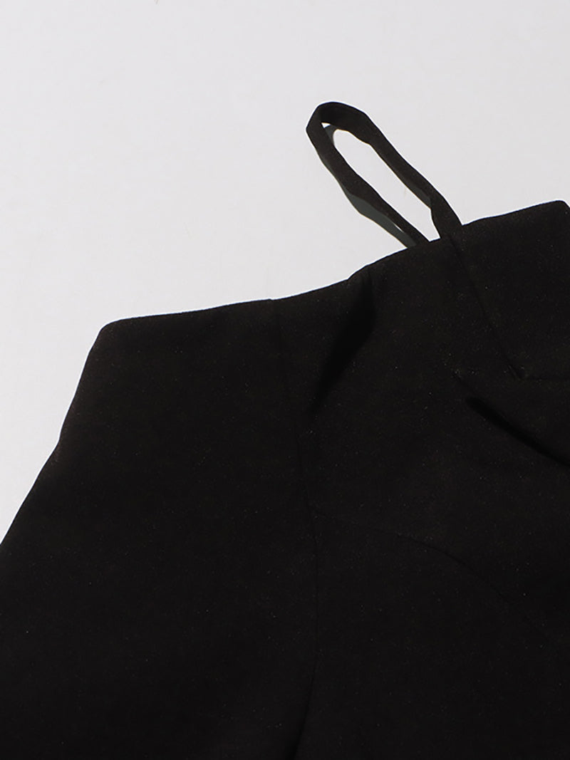 # Elegant Off-Shoulder Blazer and Pleated Skirt Set This sophisticated two-piece ensemble combines contemporary style with timeless...
