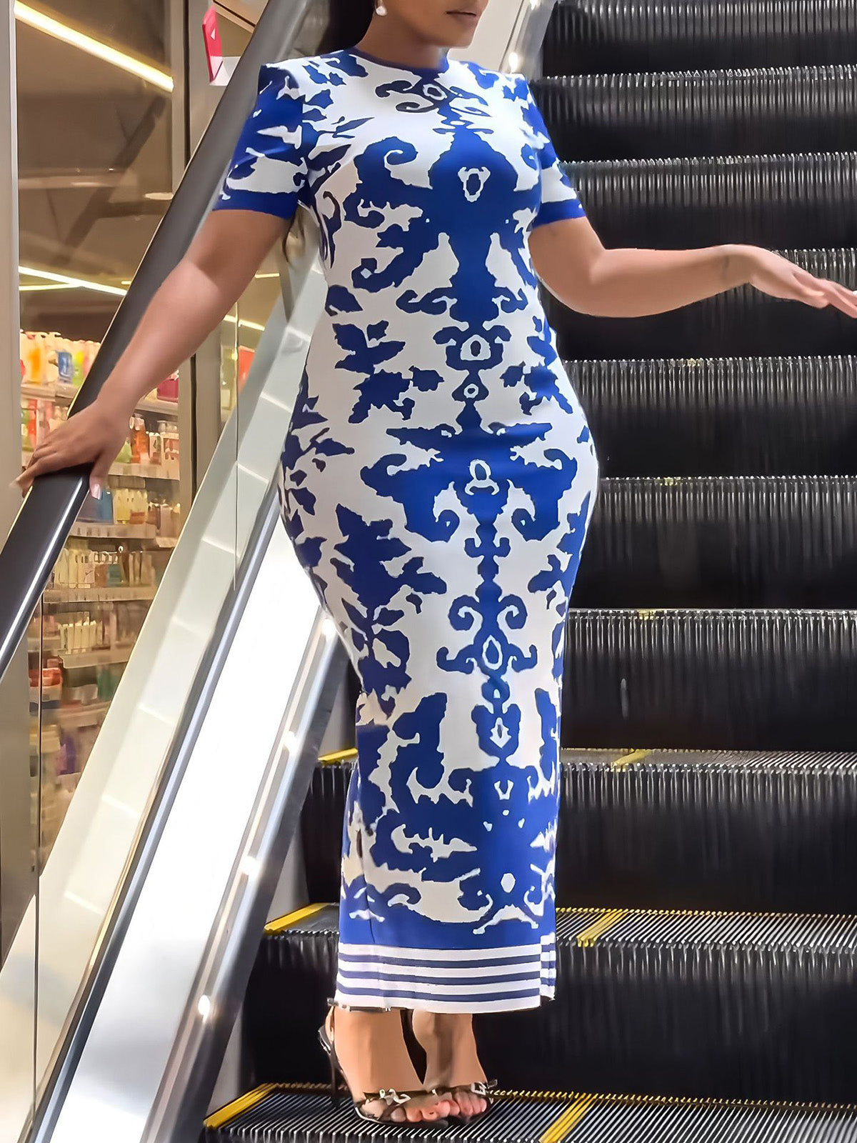 Elegant Round Collar Print Bodycon Maxi Dress offers a stylish and comfortable fit with its round neckline and bodycon design. The printed pattern adds a touch of sophistication, making it suitable for various occasions. Crafted for a flattering silhouette, this maxi dress combines elegance with everyday wearability, ideal for bulk purchasing by retailers looking to expand their fashion offering.
