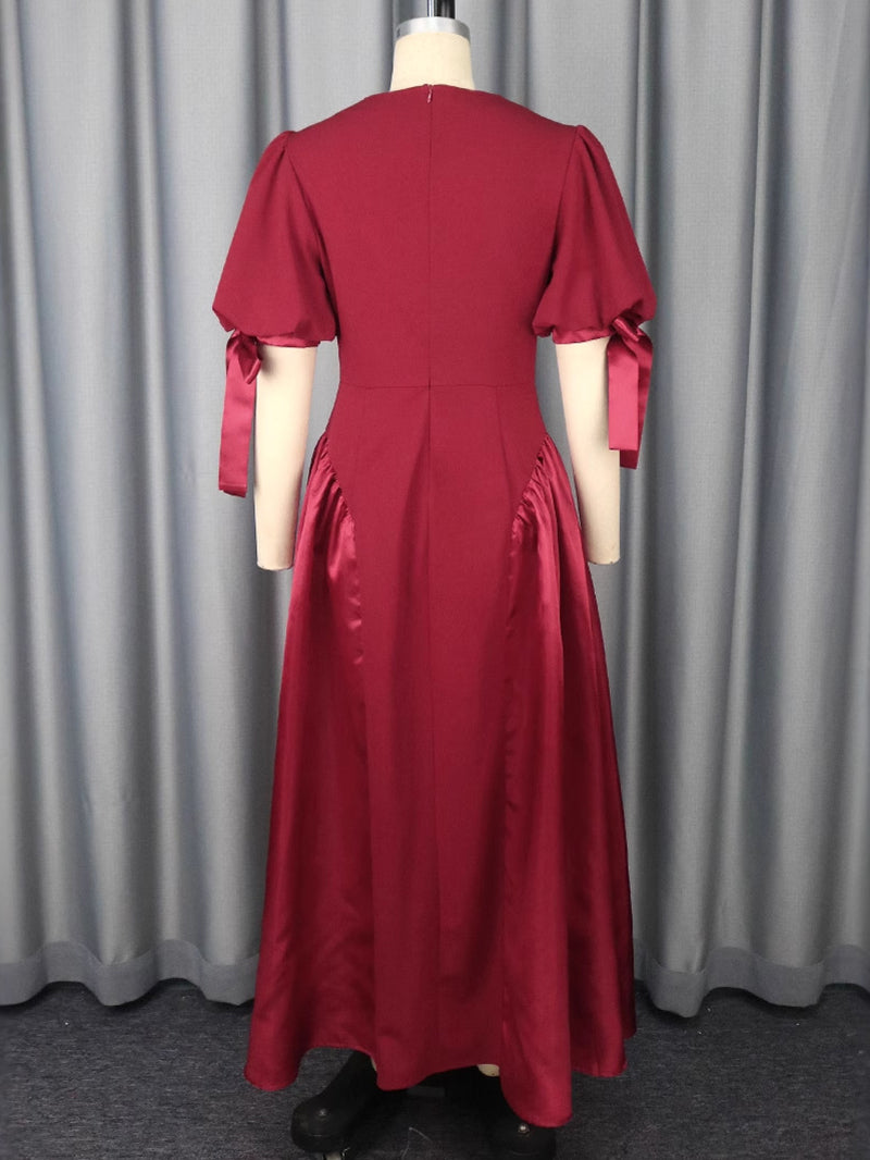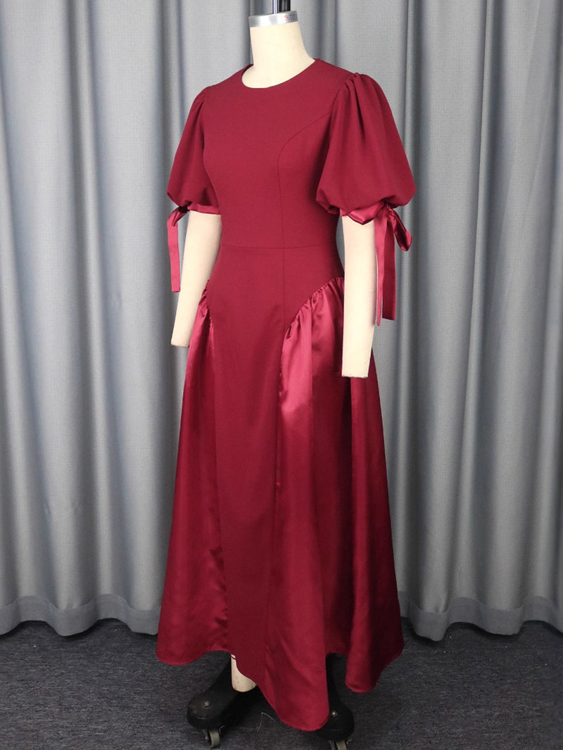 Elegant Round Neck Puff Sleeve Patchwork Party Dress This sophisticated party dress combines classic elegance with contemporary...