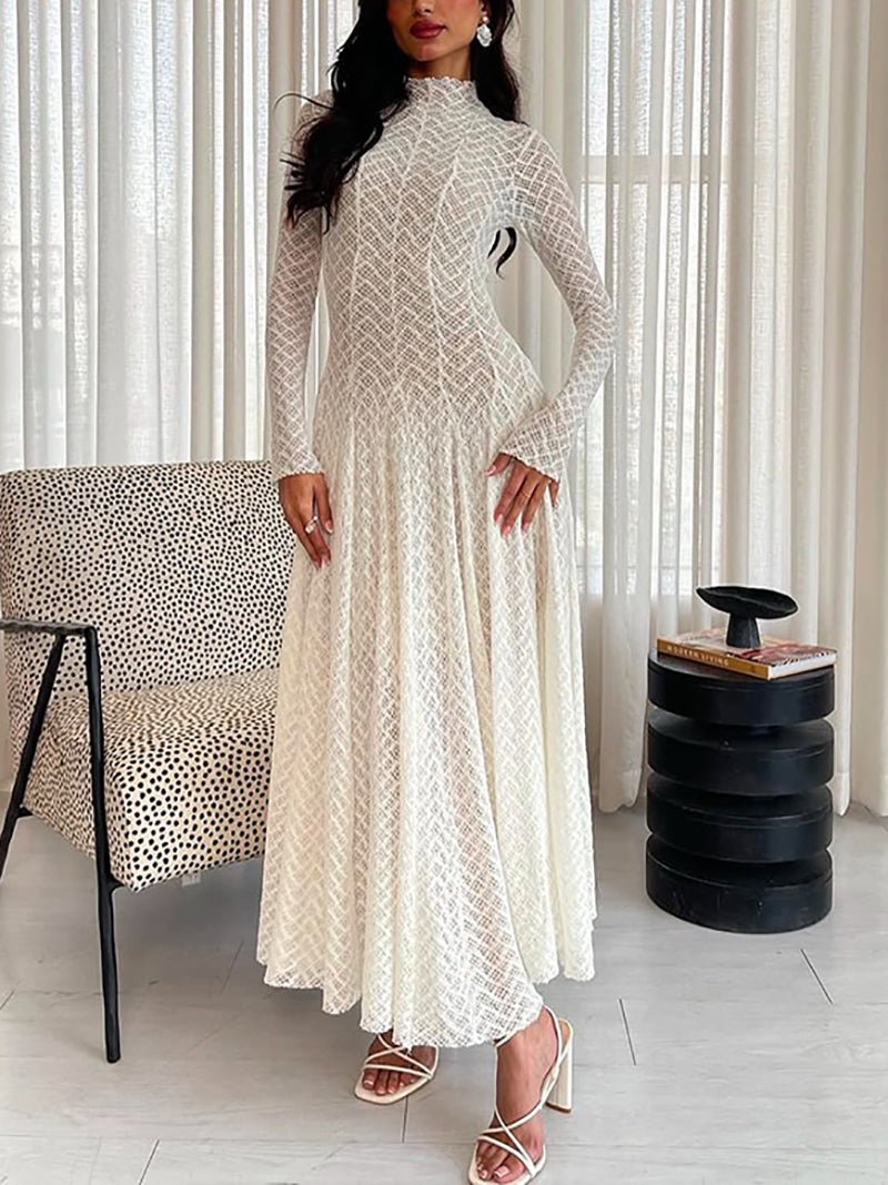 Elegant Wavy-pattern Lace Maxi Dress