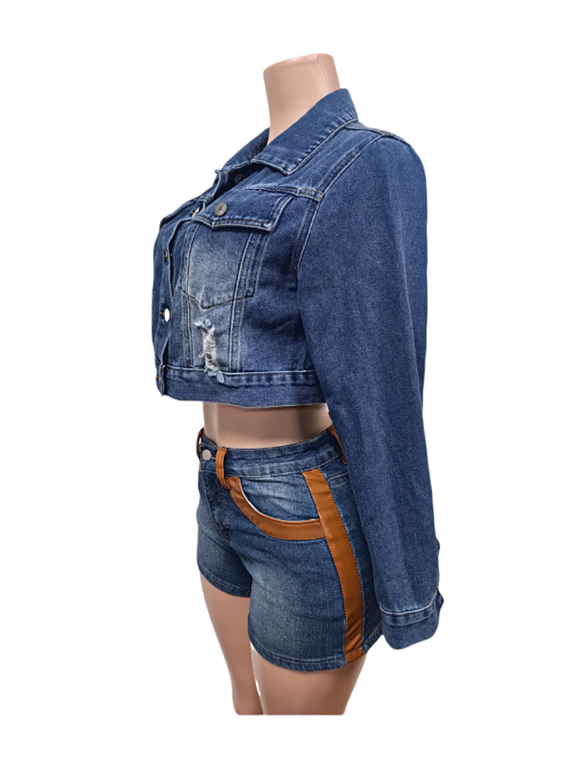 Fashion Butterfly Appliques Cropped Denim Jacket