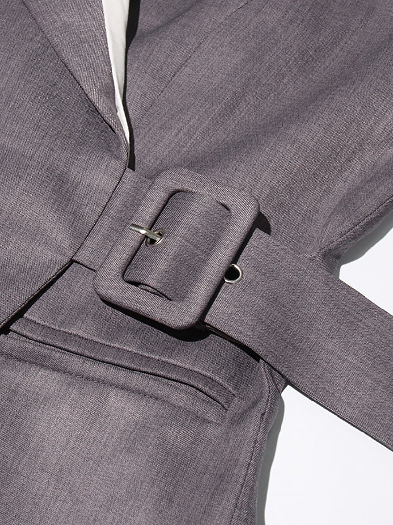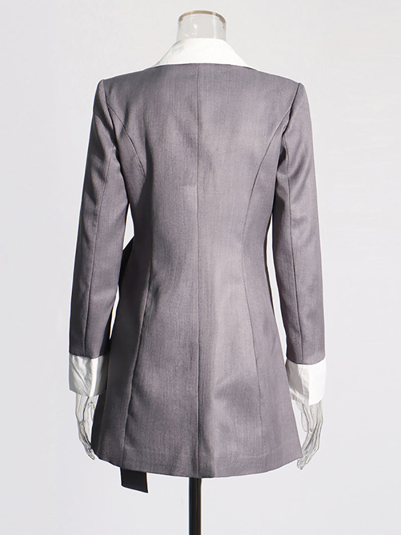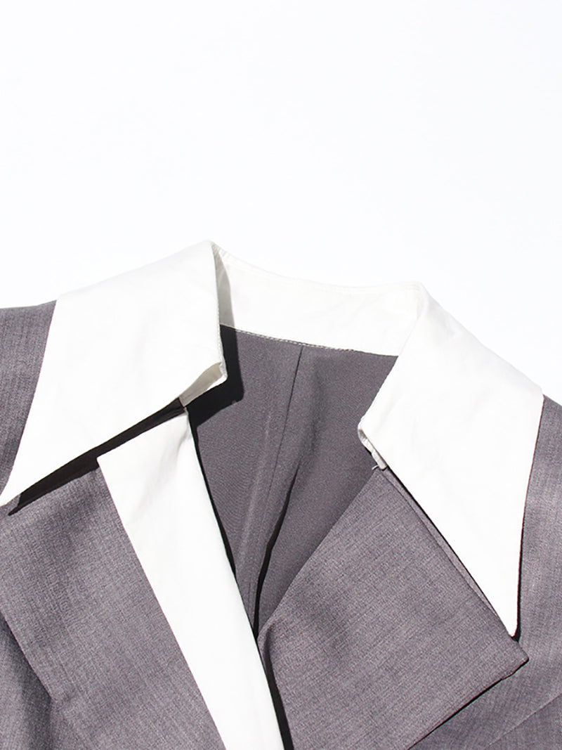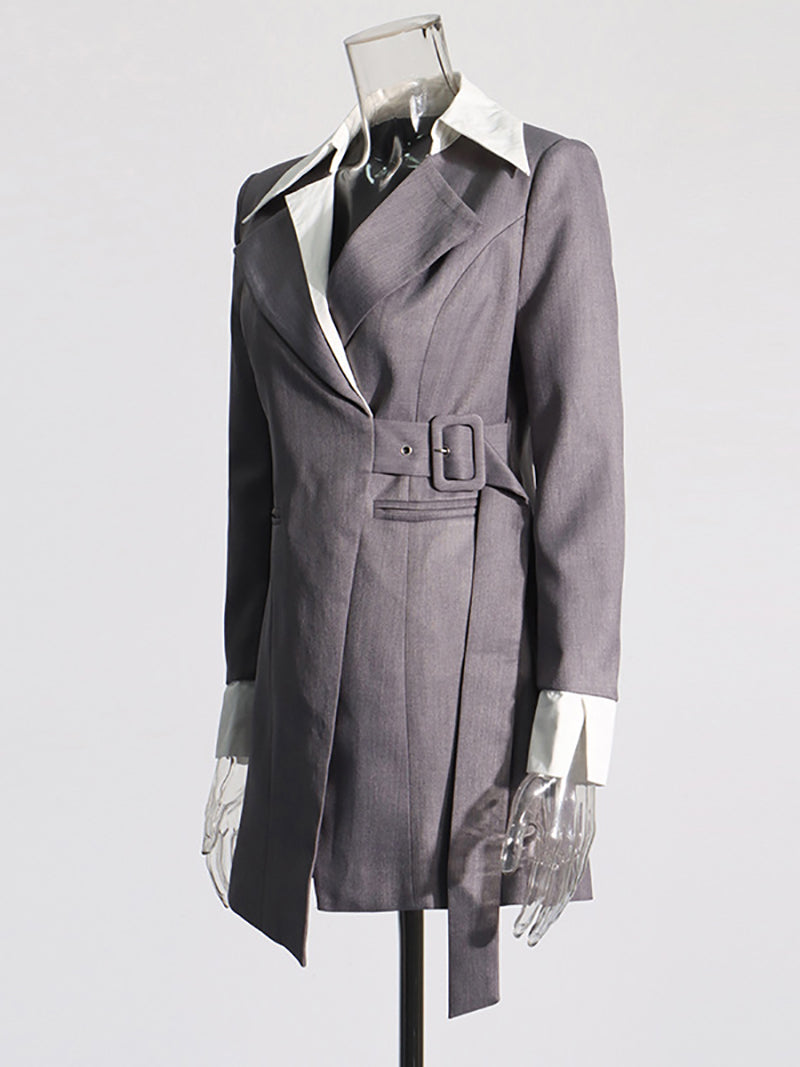 Fashion Colorblock Patchwork Belt Slim Blazer
