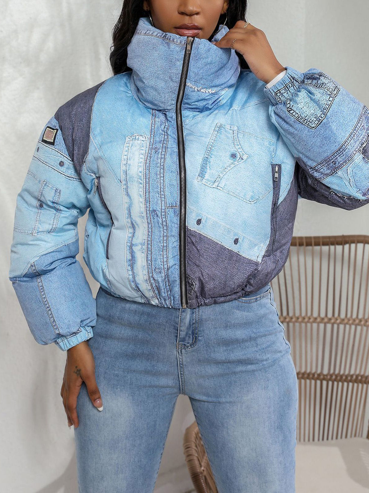 This Fashion Denim Print Cotton Jacket offers a stylish and comfortable outerwear option. Made from breathable cotton, it combines durability with a trendy denim print design. Ideal for wholesale buyers seeking versatile jackets that appeal to a wide audience, this coat provides both fashion and functionality for everyday wear.