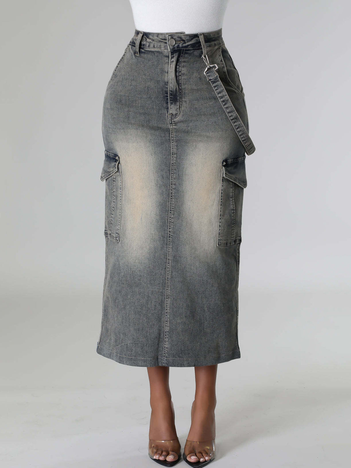 Introducing our luxurious Fashion Elastic Denim Mid Skirt, the hottest item of the season. Made with premium elastic denim, this skirt offers the utmost comfort and style. Elevate your wardrobe with this must-have piece, perfect for any occasion.