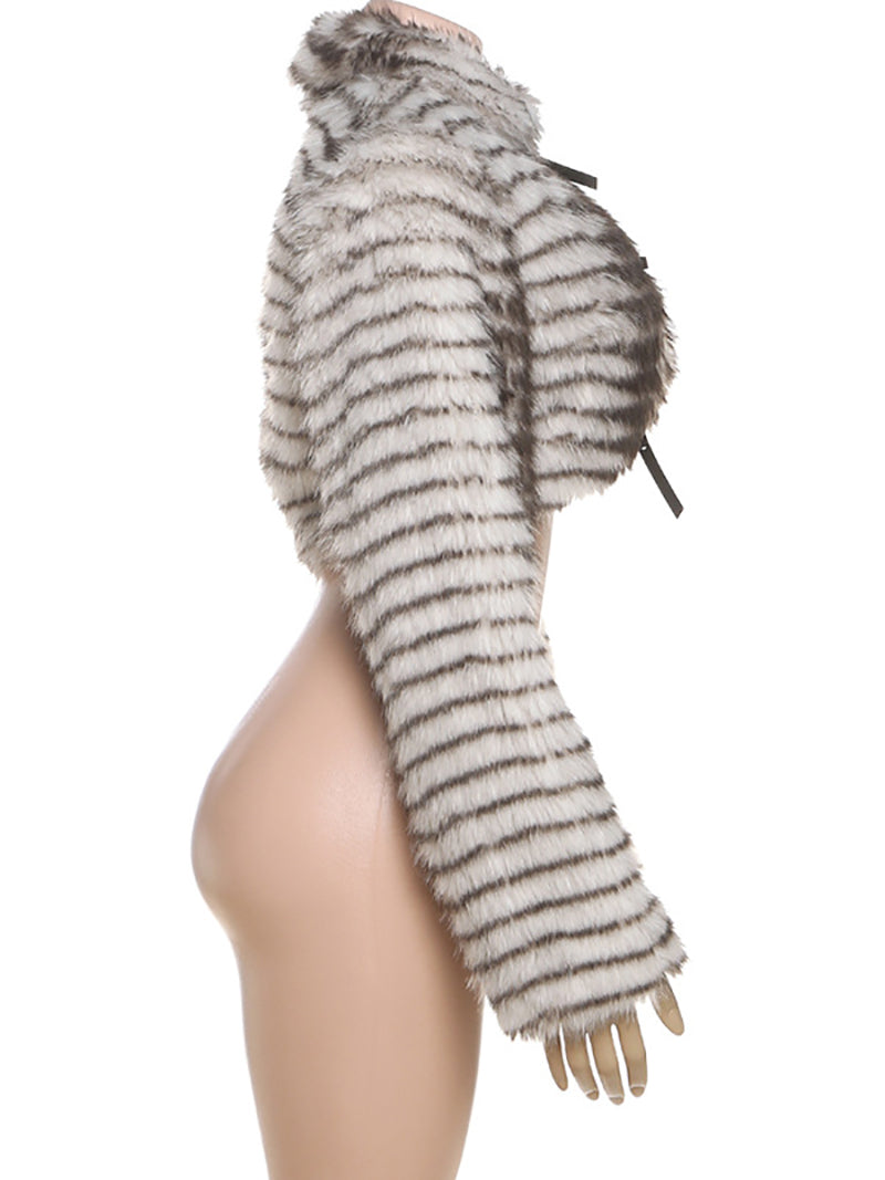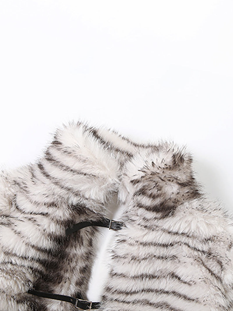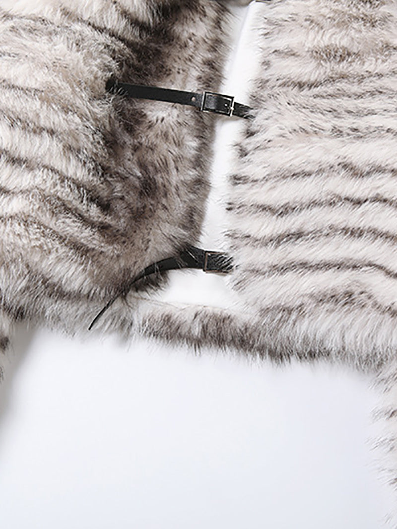 This Fashion Faux Fur Print Button Cropped Coat offers a stylish and warm addition to any wardrobe....