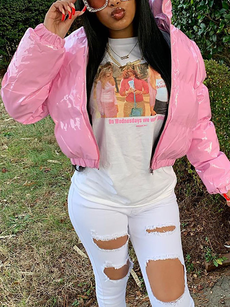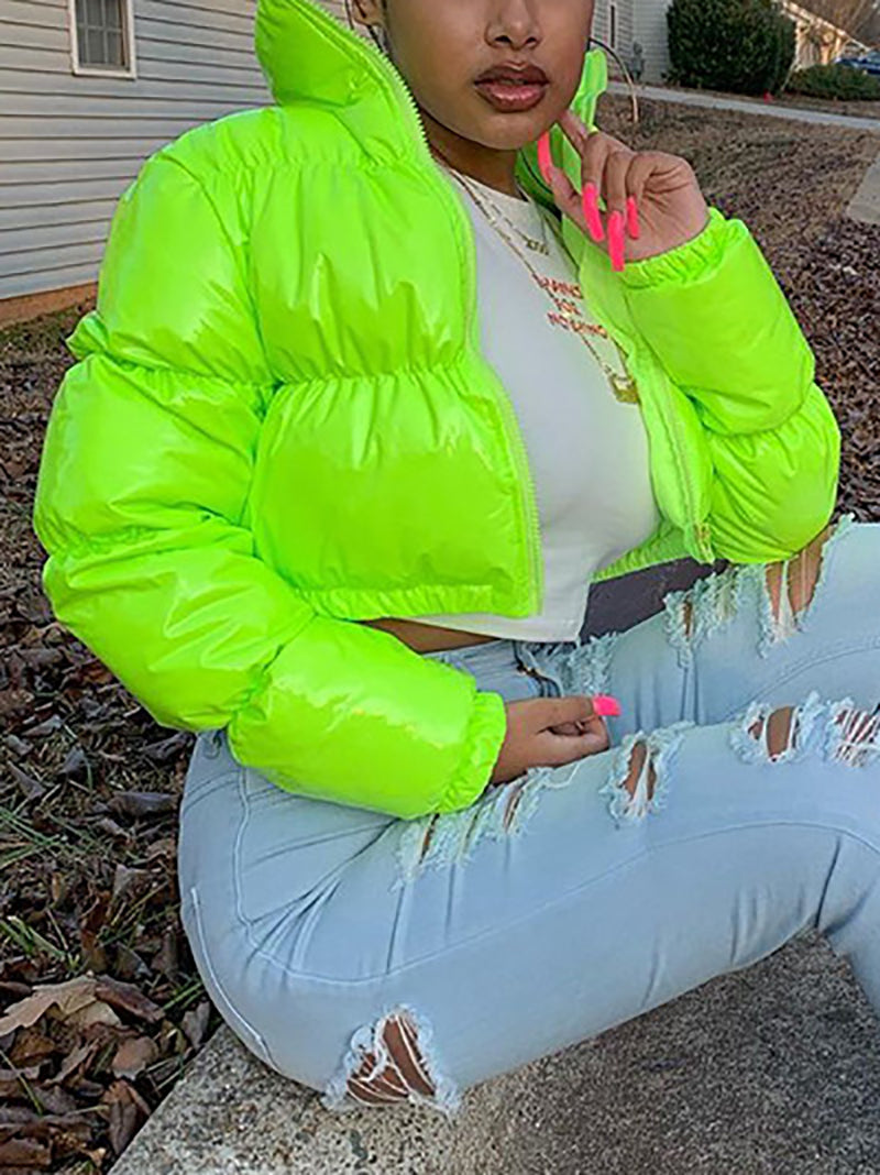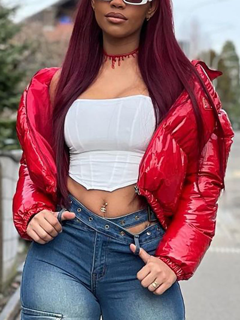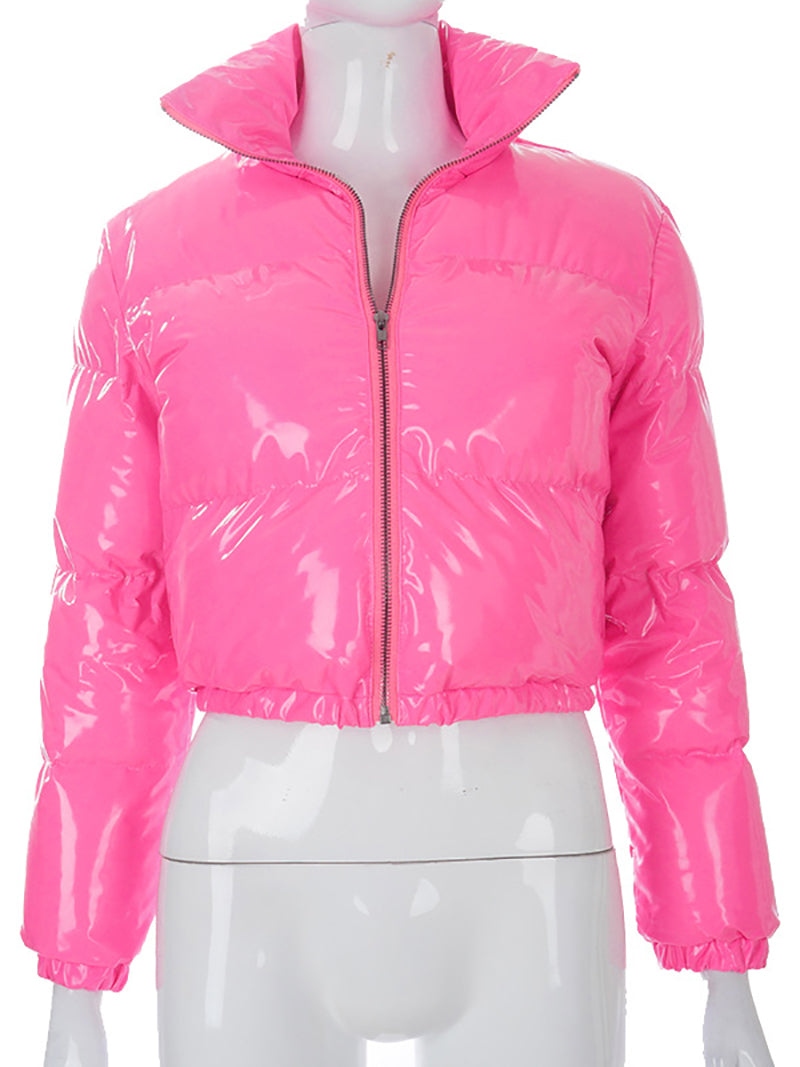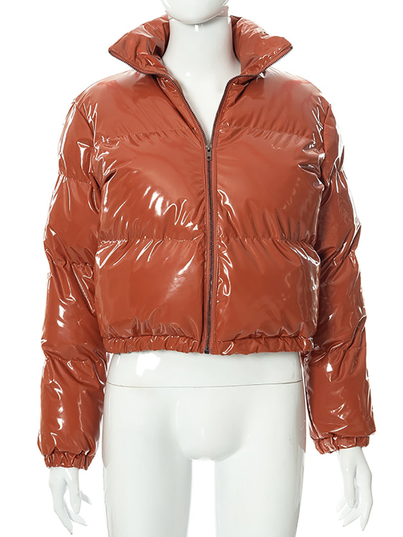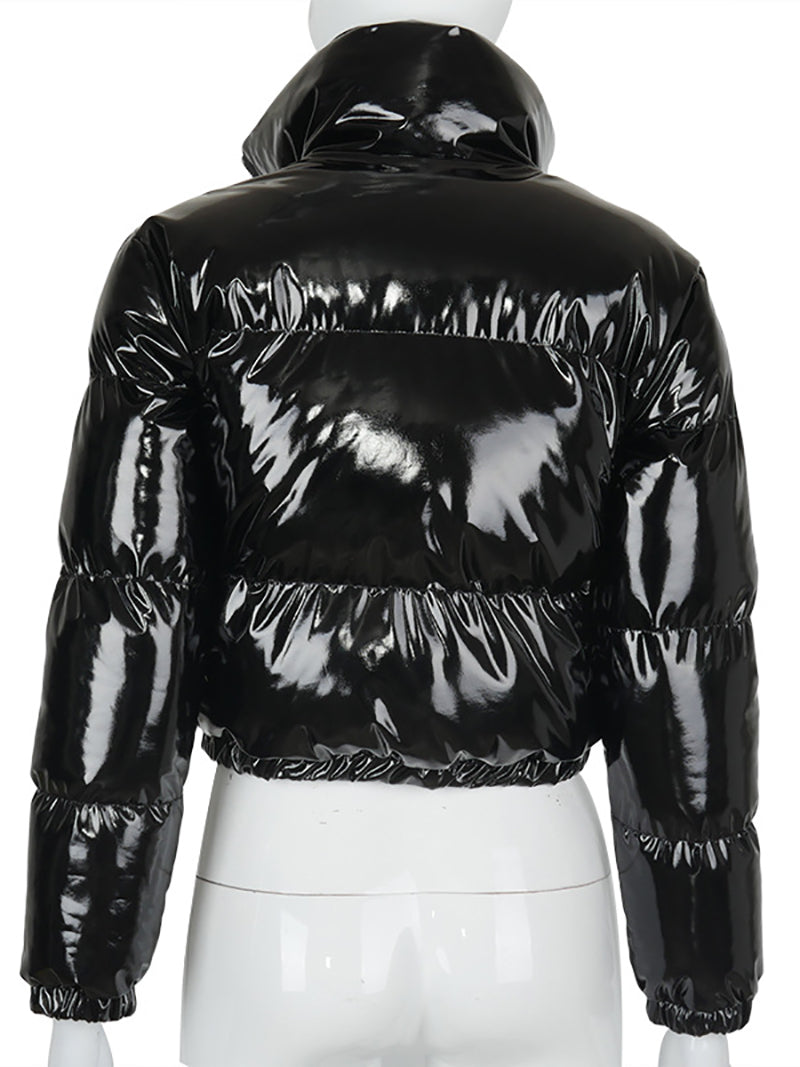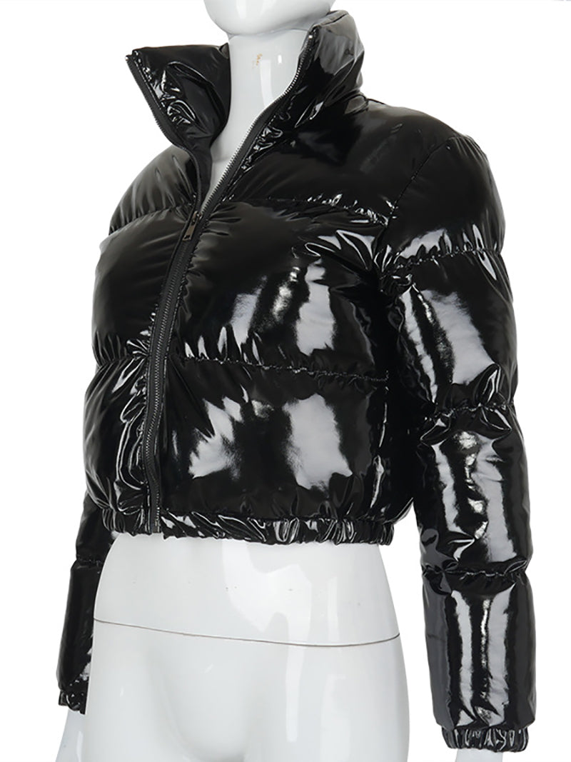 # Fashion Lustrous PU Leather Cropped Puffer Coat Elevate your outerwear collection with this sleek cropped puffer coat crafted from premium lustrous PU leather. The modern silhouette offers a contemporary edge while the lightweight puffer insulation delivers warmth without bulk. Perfect for layering or standalone wear, this versatile piece transitions seamlessly from casual to polished looks. The cropped length flatters various body types and pairs effortlessly with high-waisted bottoms. Ideal for wholesale buyers seeking on-trend pieces that appeal to fashion-forward customers. Durable construction ensures lasting quality through multiple seasons.