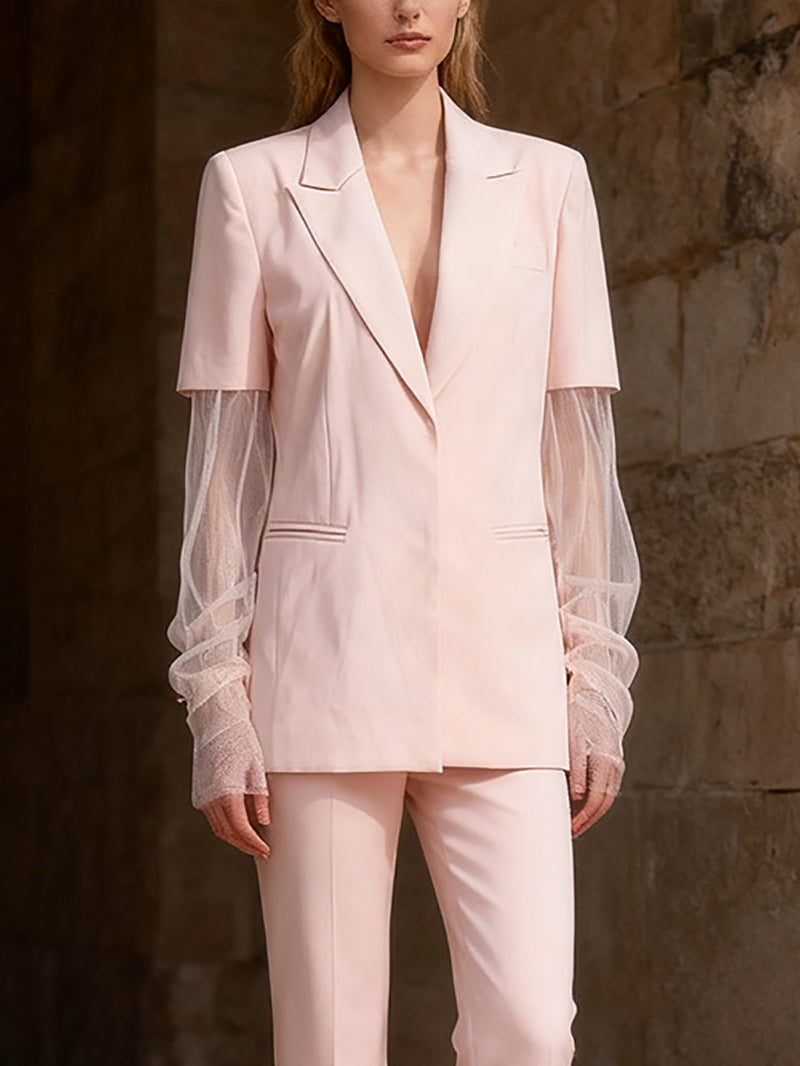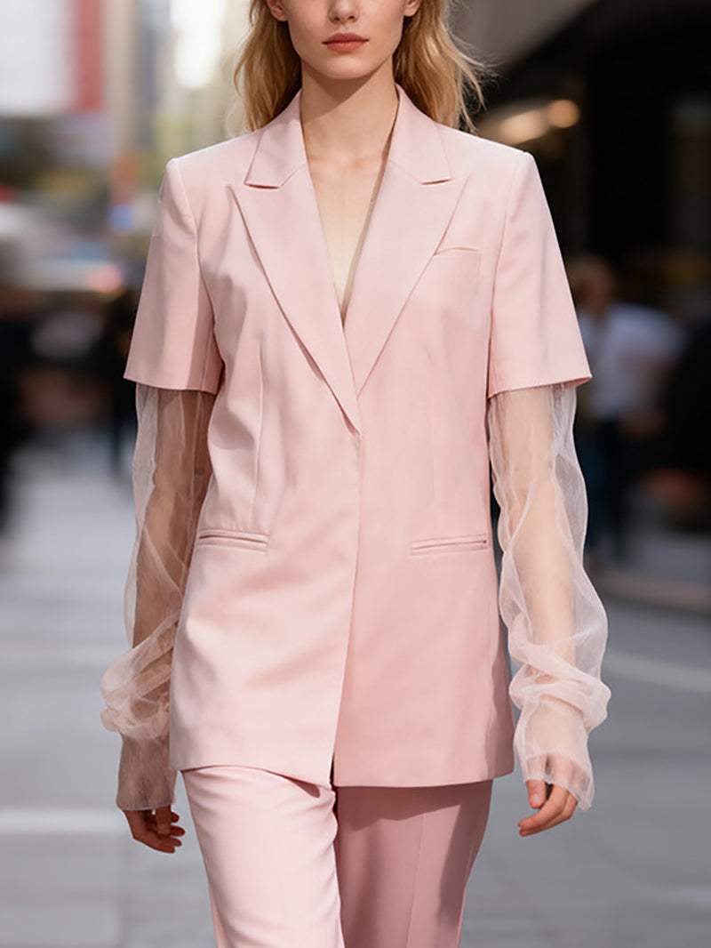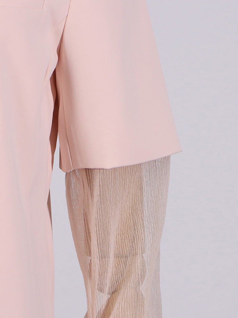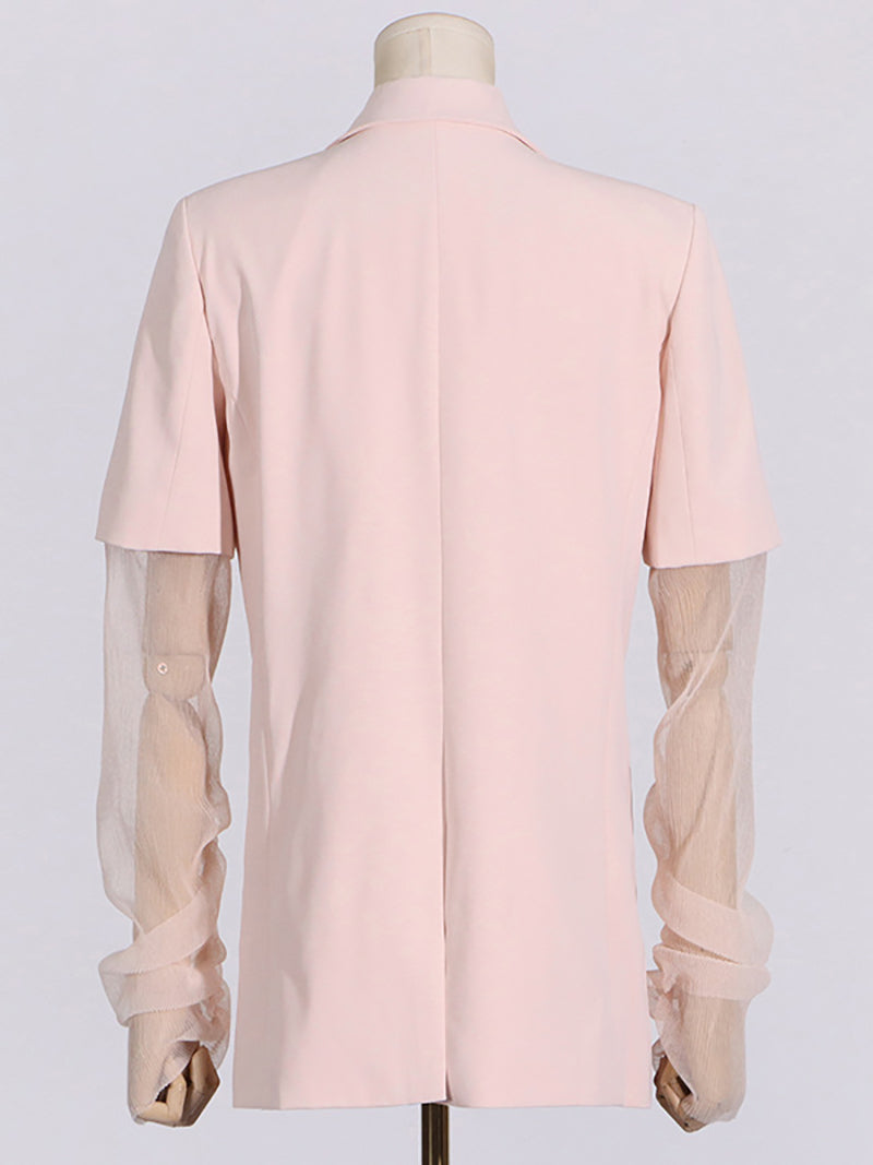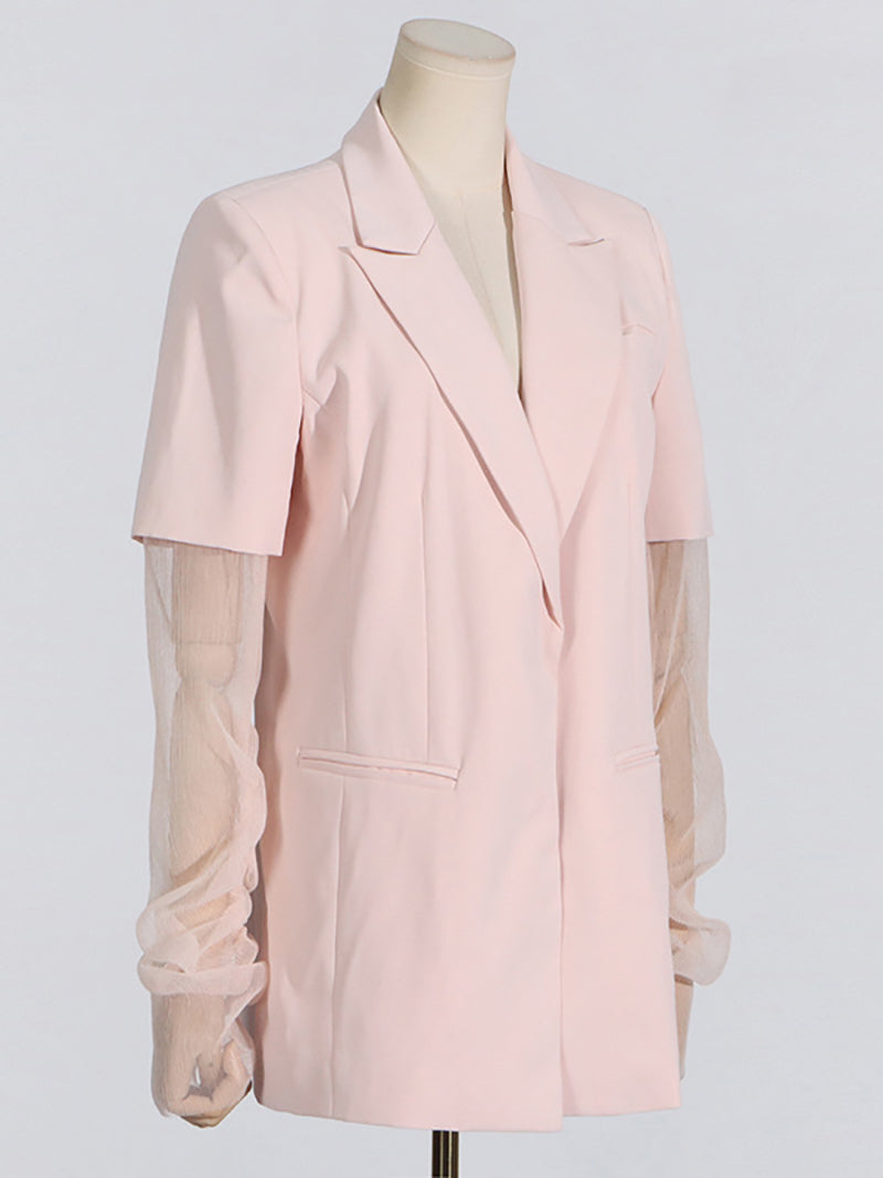 Fashion Patchwork Mesh Sleeve Loose Blazer