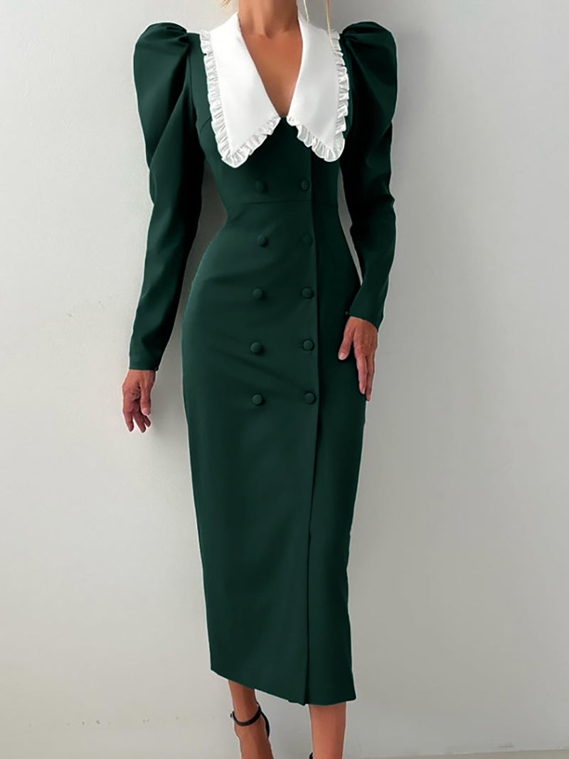 # Fashion Peter Pan Collar Slim Bodycon Dress Elevate your wholesale inventory with this sophisticated bodycon dress featuring a timeless Peter Pan collar. The sleek, form-fitting silhouette flatters all body types while the distinctive collar adds a charming, vintage-inspired detail that sets it apart from standard offerings. Crafted for comfort and style, this versatile piece works for both casual outings and semi-formal occasions. Perfect for retailers seeking quality basics with contemporary appeal. Stock this wardrobe essential to meet customer demand for figure-hugging dresses with classic design elements.