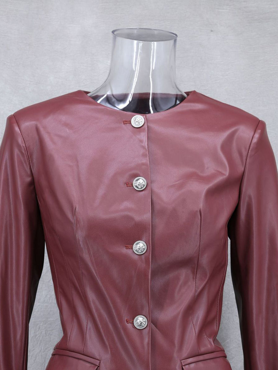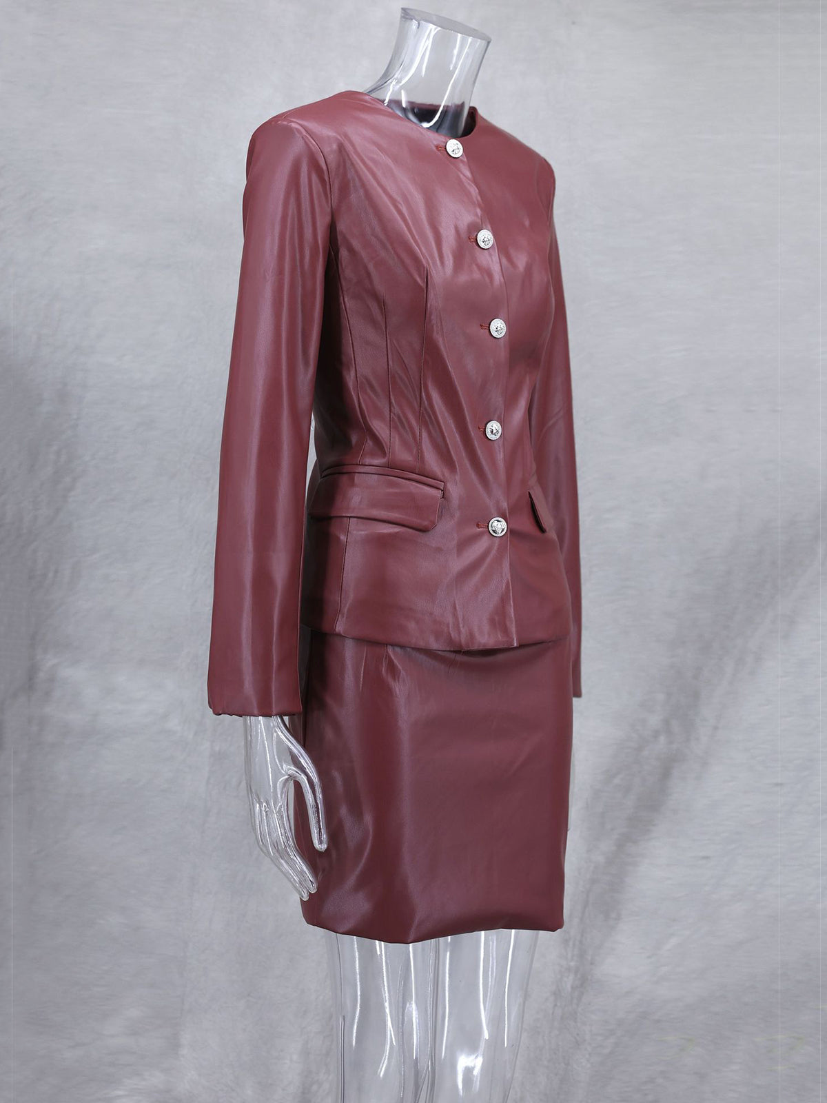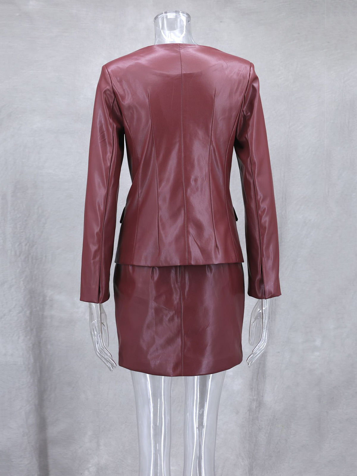 # Fashion PU Leather Cinched Waist Jacket And Skirt Sets Elevate your wholesale inventory with this sophisticated two-piece ensemble featuring premium PU leather construction. The tailored jacket showcases a flattering cinched waist design that accentuates the silhouette, while the coordinating skirt completes the polished look. Perfect for retailers targeting fashion-forward customers seeking contemporary style with versatile appeal. The structured PU material offers durability and easy maintenance, making it an excellent choice for bulk orders. Ideal for boutiques, department stores, and online retailers looking to stock on-trend separates that work as a set or individually.