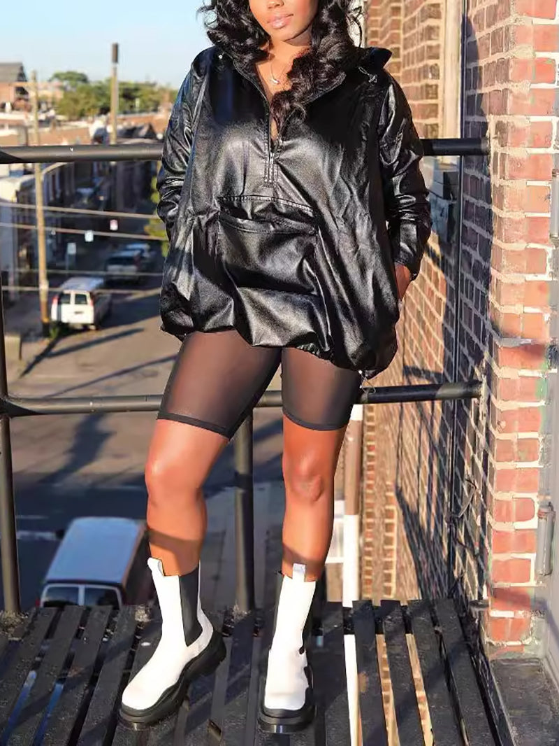 # Fashion PU Leather Long Sleeve Loose Hooded Sweatshirt Elevate your wholesale collection with this versatile hooded sweatshirt featuring premium PU leather accents. The relaxed, oversized silhouette offers comfort and contemporary style, while long sleeves provide year-round wearability. The structured hood and quality construction make it ideal for bulk orders and resale. Perfect for casual streetwear lines, this piece combines modern aesthetics with practical design—a reliable choice for retailers seeking on-trend essentials that appeal to diverse customer bases.