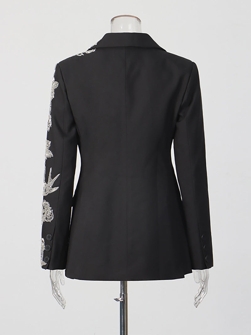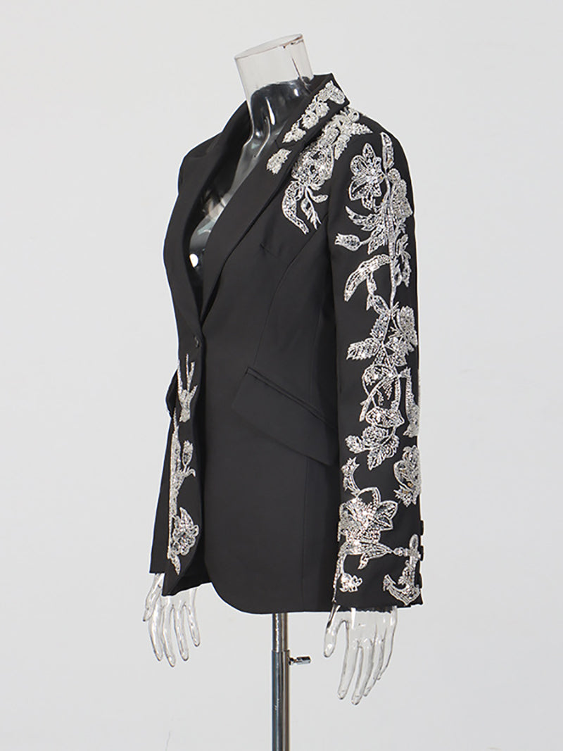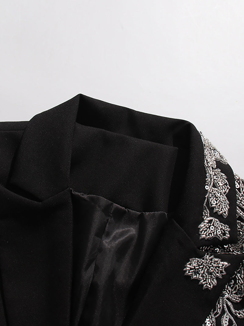 Fashion Sequin Embroidery Cinched Waist Blazer