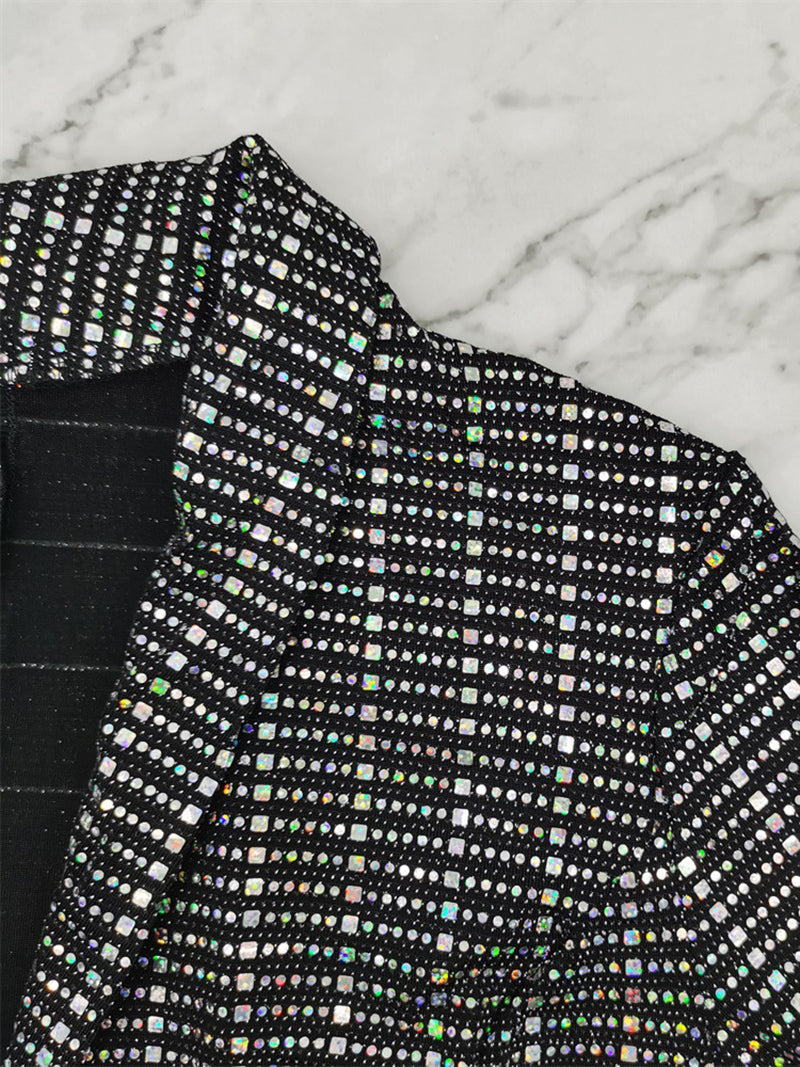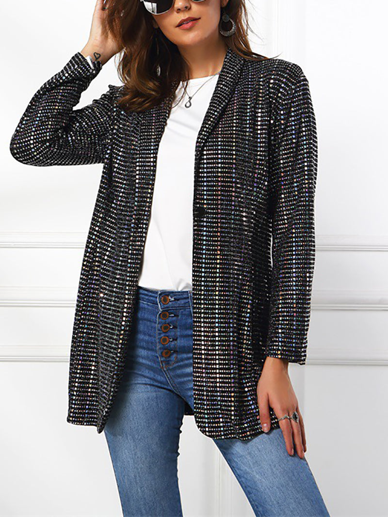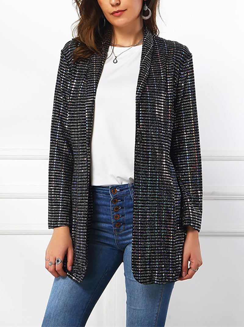 Fashion Solid Sequins Turndown Collar Slim Fit Blazer