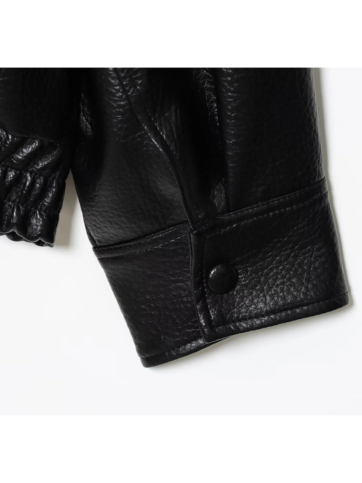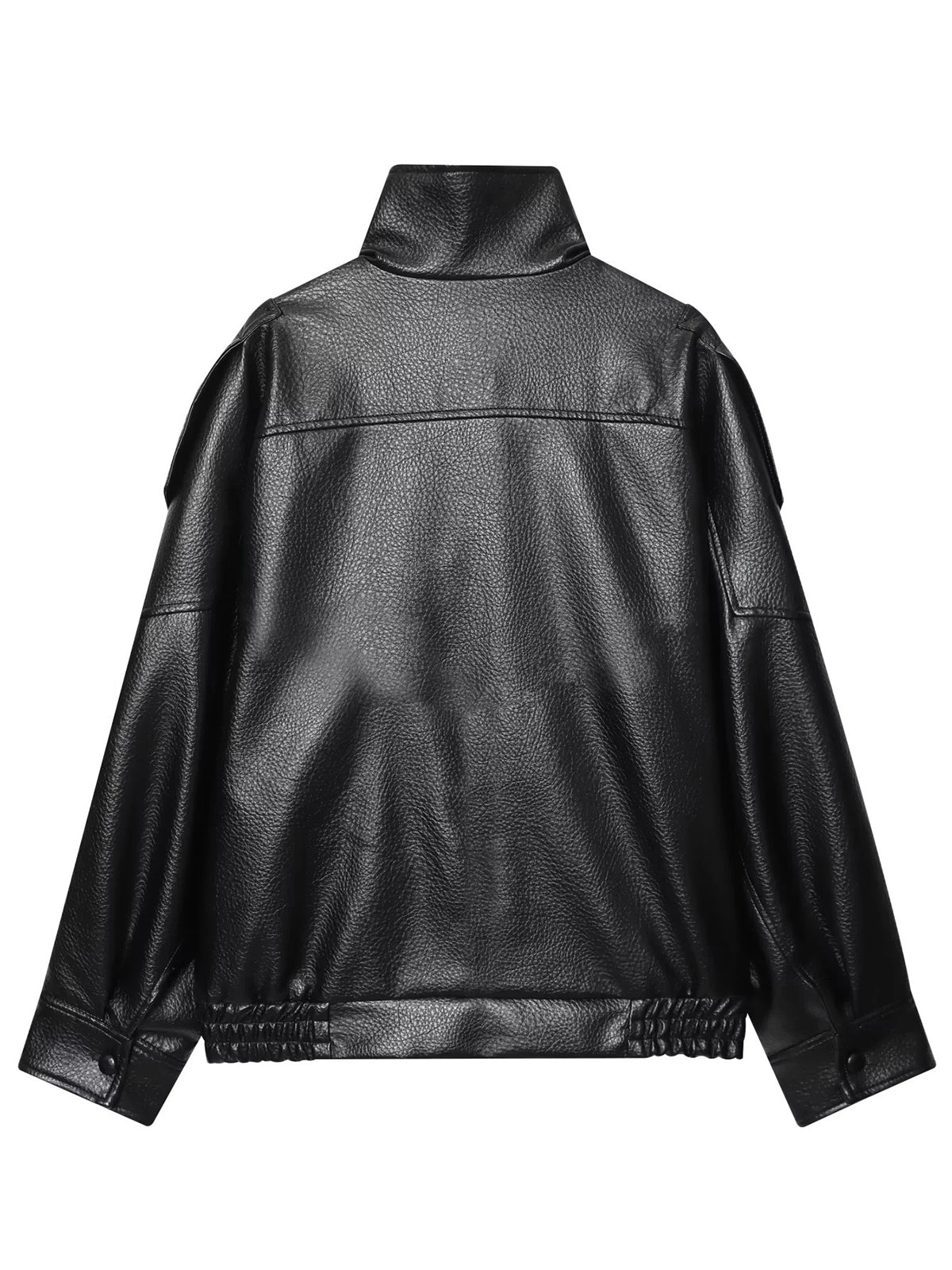 # Fashion Stand Collar Faux Leather Loose Jacket Elevate your wholesale collection with this versatile stand collar faux leather jacket. Crafted from premium synthetic leather, it delivers a bold, contemporary aesthetic at competitive wholesale pricing. The relaxed, oversized fit accommodates diverse body types, making it ideal for bulk orders across multiple sizes. The structured stand collar adds sophistication, while the loose silhouette ensures comfort for all-day wear. Perfect for retailers seeking statement outerwear that appeals to fashion-forward customers. Durable construction and timeless design make this jacket a reliable bestseller for your inventory.