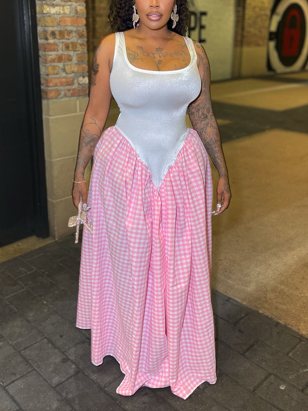 This Fashion U Neck Plaid Patchwork Pleated Maxi Dress combines classic plaid with modern patchwork details for a stylish look. The U-shaped neckline offers a flattering fit, while the pleated maxi skirt adds elegant movement. Perfect for any occasion, this dress balances comfort and trendiness, making it a versatile addition to your collection.