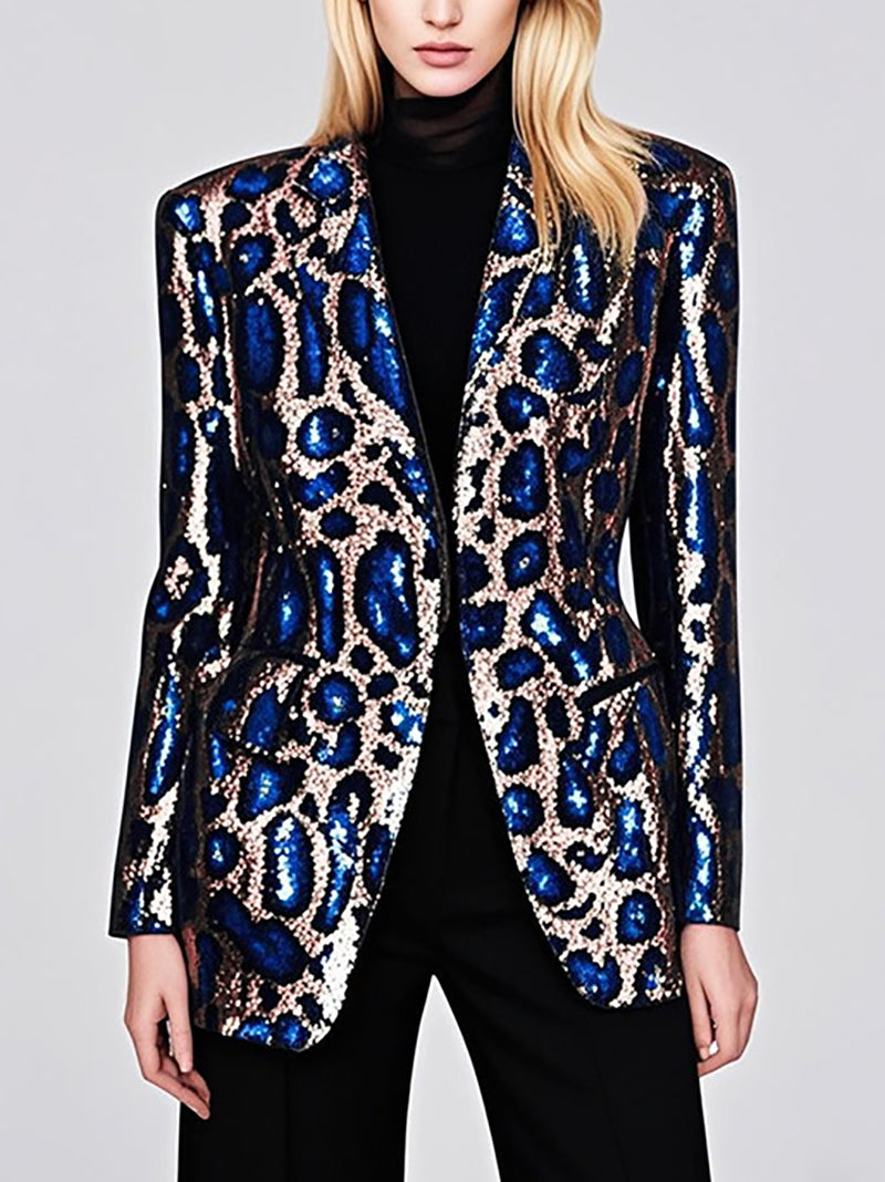 Fashion V-neck Leopard Gradient Sequins Blazer