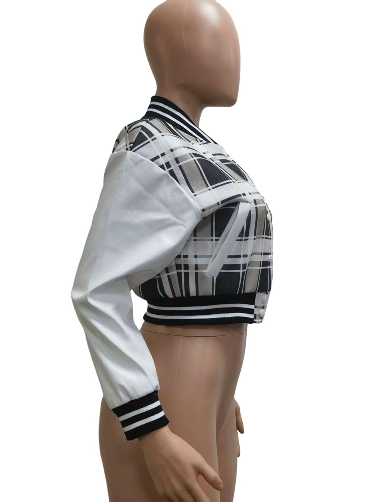 # Letter Print Patchwork Cropped Jacket This versatile cropped jacket combines bold letter print detailing with strategic patchwork paneling for a contemporary streetwear aesthetic. The shortened silhouette offers modern styling versatility, pairing effortlessly with high-waisted bottoms or layered looks. Quality construction ensures durability for wholesale distribution, while the eye-catching design appeals to fashion-forward retailers and their customers. Perfect for bulk orders seeking trendy, statement-making outerwear that stands out on the sales floor.
